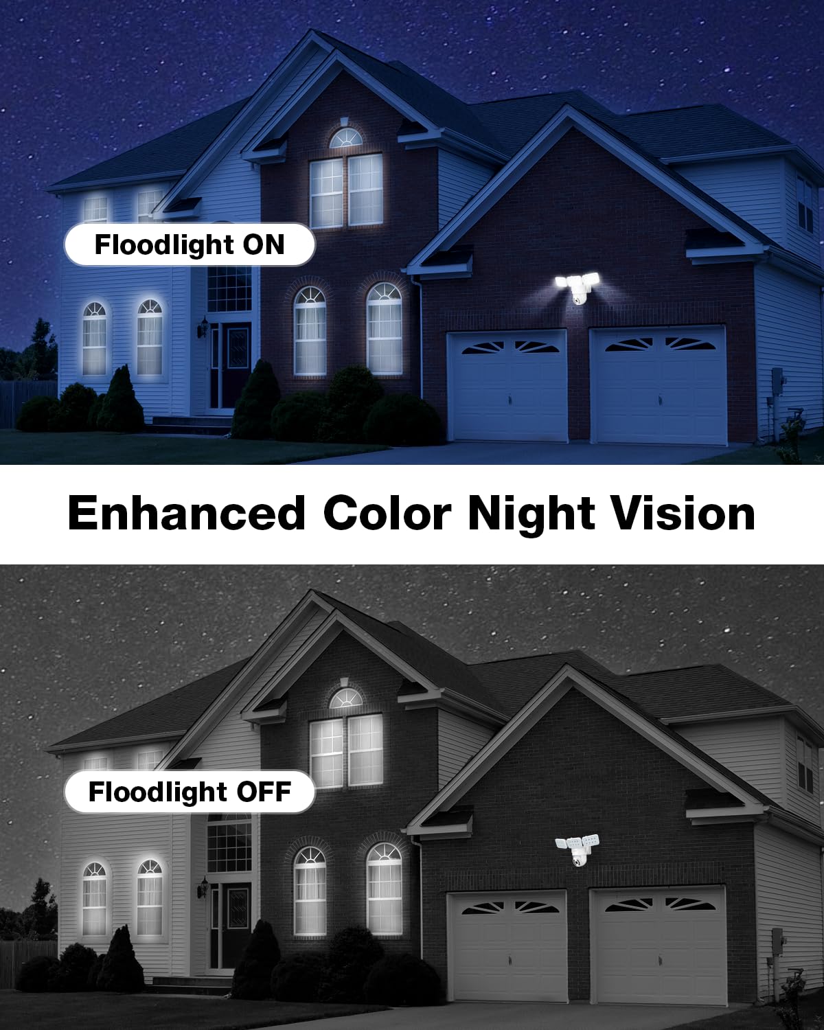 ✅【Reliable Connectivity】: Enjoy hassle-free pairing with our floodlight camera, thanks to its integrated 2.4GHz WiFi and Bluetooth technology. Equipped with two external signal enhancement antennas, it provides a stable connection with an impressive range of up to 65ft (20m). Additionally, seamlessly control your camera with voice commands through Alexa and Google Assistant for added convenience.