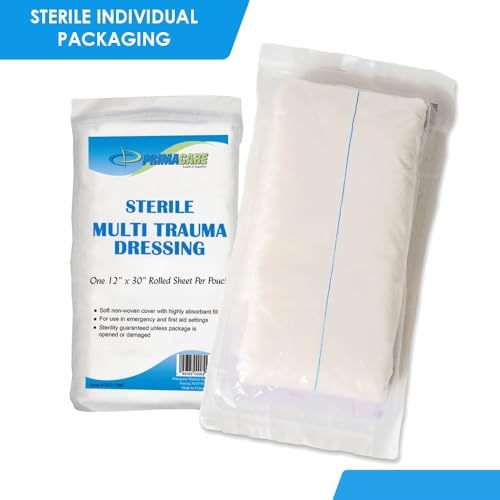 Product Description This Primacare multi trauma dressing offers greater absorbance efficiency to wicks quickly to prevents bleeding in small or large open wounds of the patient to get an early cure. It is made of high-quality soft non-woven face materials and easy to apply and take off on a wound, suitable for all first aid kits. Provides much-needed protection and padding for all the injuries that you get. It offers you maximum protection and prevents further injury once you dress your wounds. Suitable for use on different types of wounds and injuries. It can be used to dress a deep cut or a burn on someoneβs body. Rolled in a compact size which can be easier to carry for any wounds. They measure 12""x30"" to allow stored in your trauma kit, backpack, or anywhere Features: Soft Non-Woven Face Offers Greater Absorbency Protection and Padding Wicks Quickly to Prevents Exudates From Pooling Rolled in A Compact Kit Friendly Pack Manufacturer Contact Information 908-486-7050