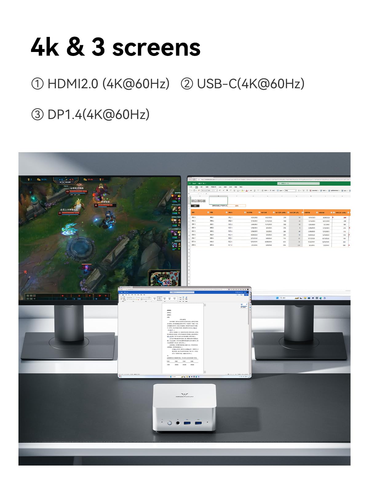 【AV1 Decode and Xe Architecture】 Enhance your game's visuals with Mini PC UN1290 AV1 decoding capabilities. AV1 decoding optimizes the video stream and immerses you in stunning graphics and realistic details. Xe architecture brings games to life with its superior graphics performance. It will give you a more immersive gaming experience.