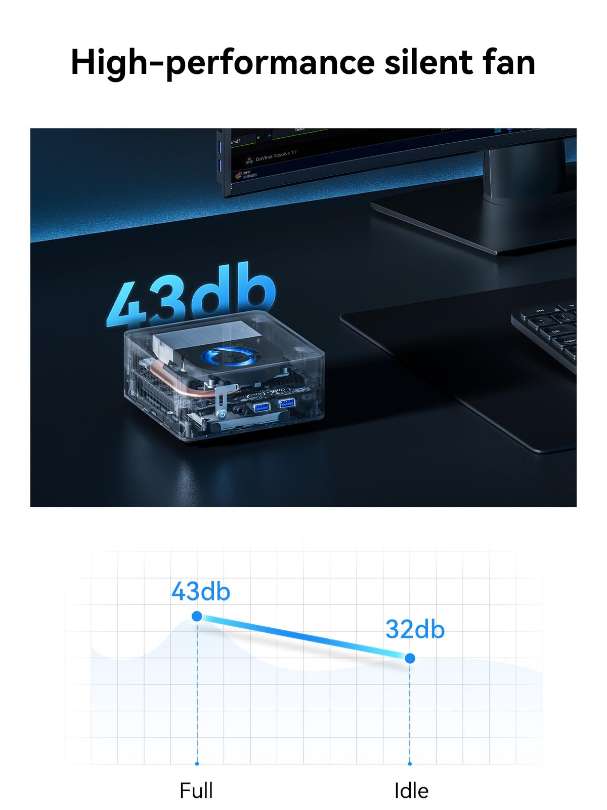 【Flexible Upgrade】Mini PC UN1290 is equipped with 32GB DDR4 memory (dual-channel) and 1TB of M.2 2280 PCIe 4.0 SSD. The DDR4-3200 + PCIe 4.0 SSD combination ensures fast data access and smooth multitasking.1 x 2.5 "SATA HDD/SSD slots, expandable up to 2TB.