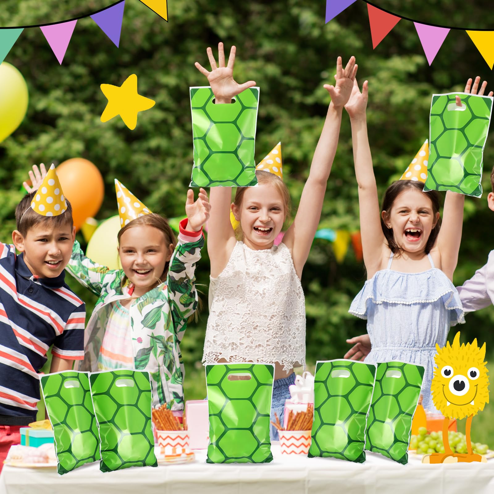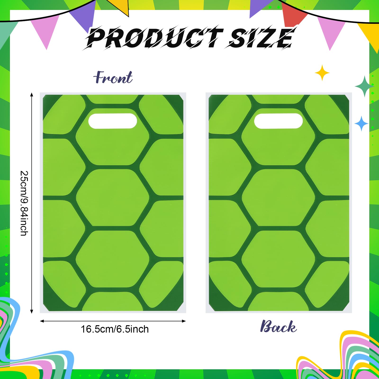 Creative Design: green party bags adopts the turtle shell pattern as the theme,with eye-catching design and distinct features.turtle bags all have top handles, so your guests can carry them easily,and they are very sturdy and odor-free