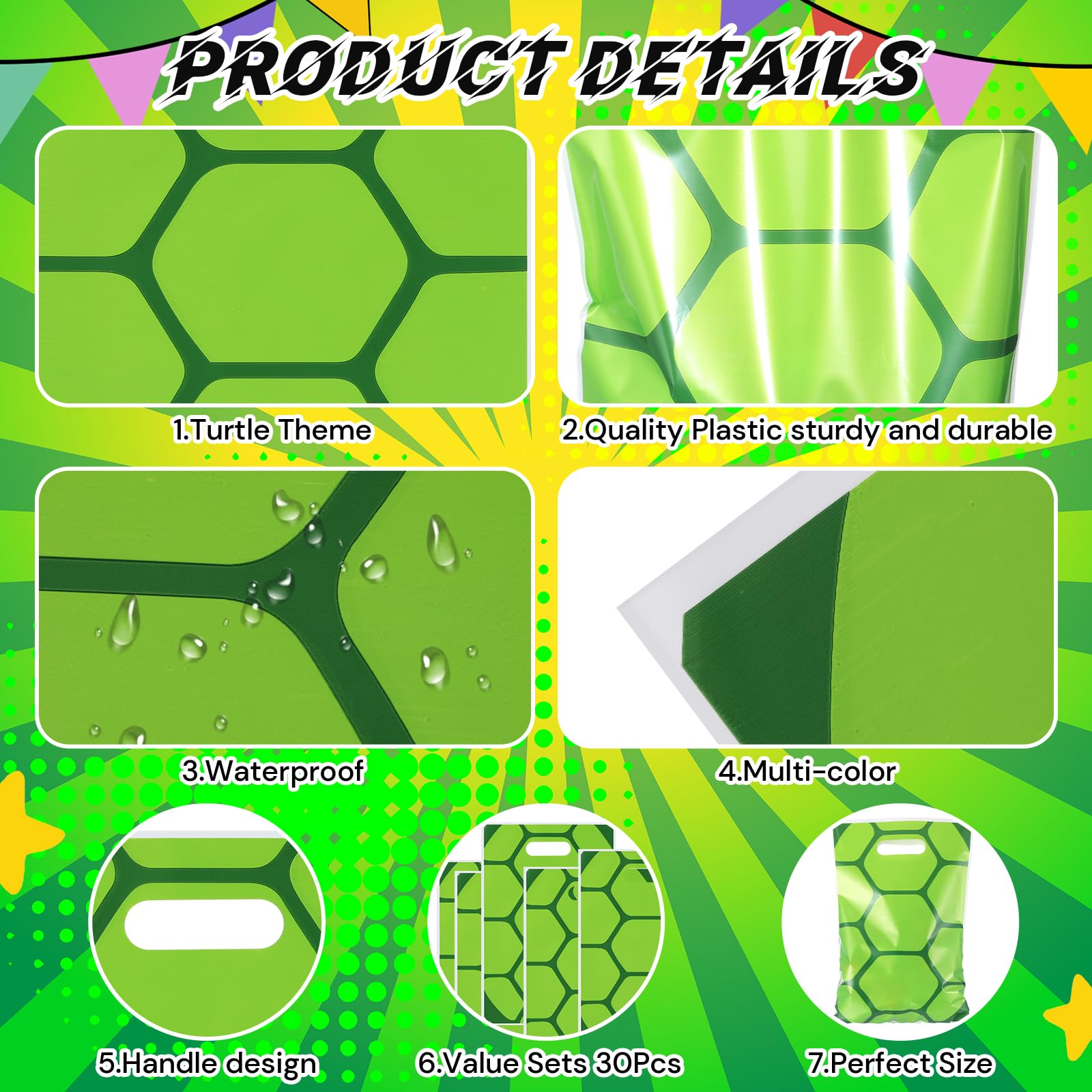 Turtles Theme Bags: you will get 30 turtle party bags in total, which is sufficient quantity; Whether the bag is the front or the back, the turtle plastic bags are very attractive; These designs have real visual effects