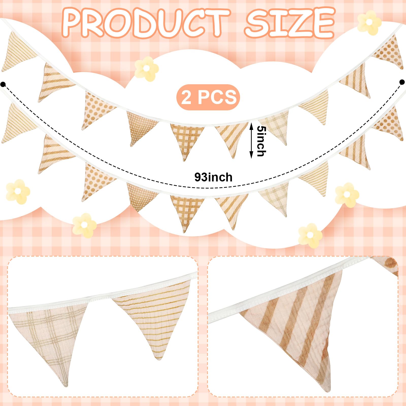 Package and Size: you will get 2 strips of garland decor, each one measures approx. 2.4 meters/7.75 feet in length, and each strip has 10 flags, enough for your decorative needs in most places