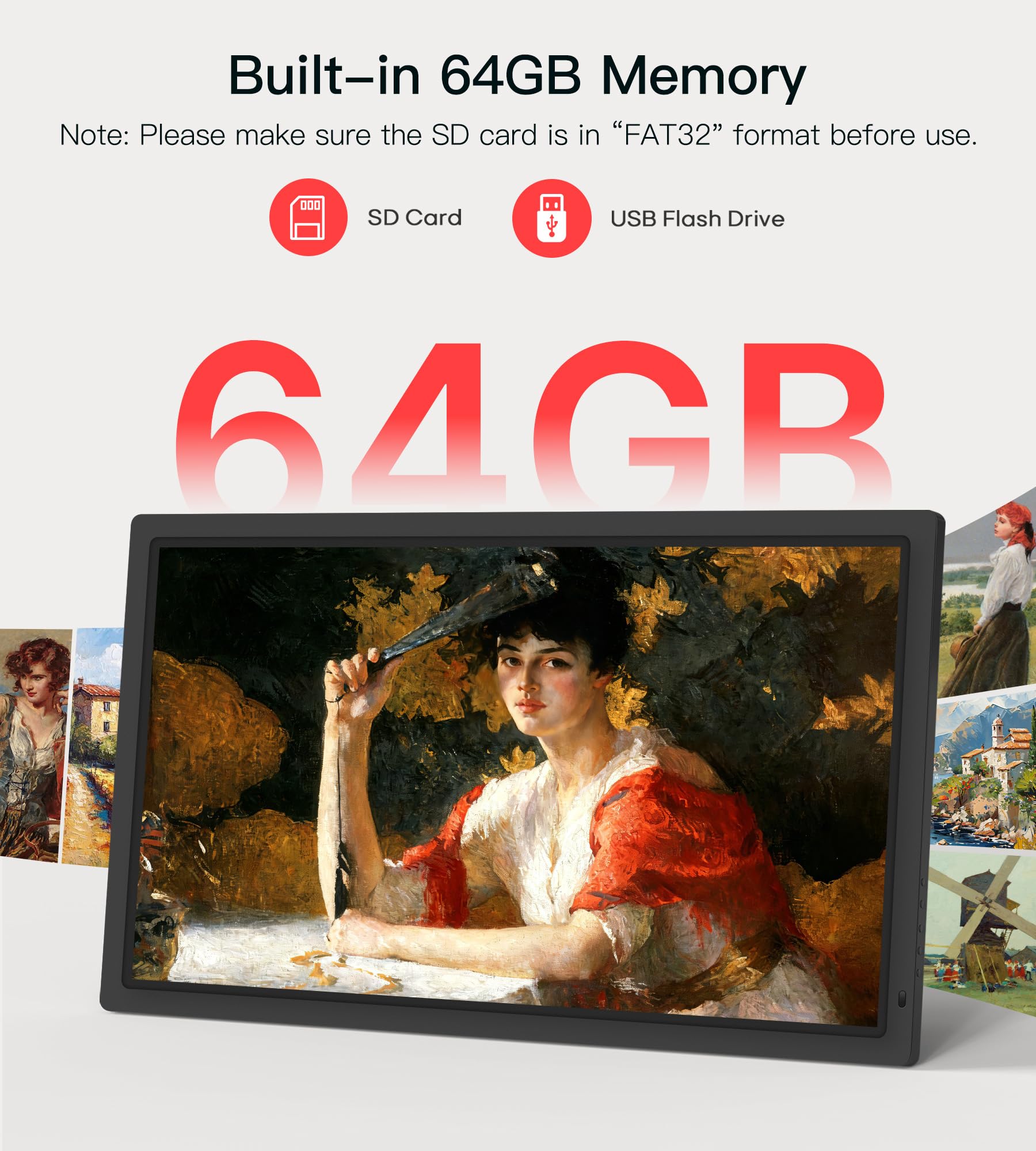 【Generous 64GB Built-in Storage & Flexible Expansion】Store tens of thousands of high-resolution photos and videos with the massive 64GB internal memory. For even more space, easily expand storage using the SD card or USB flash drive (supports FAT32 format) ports. This ensures you never have to delete your favorite memories to make room for new ones.