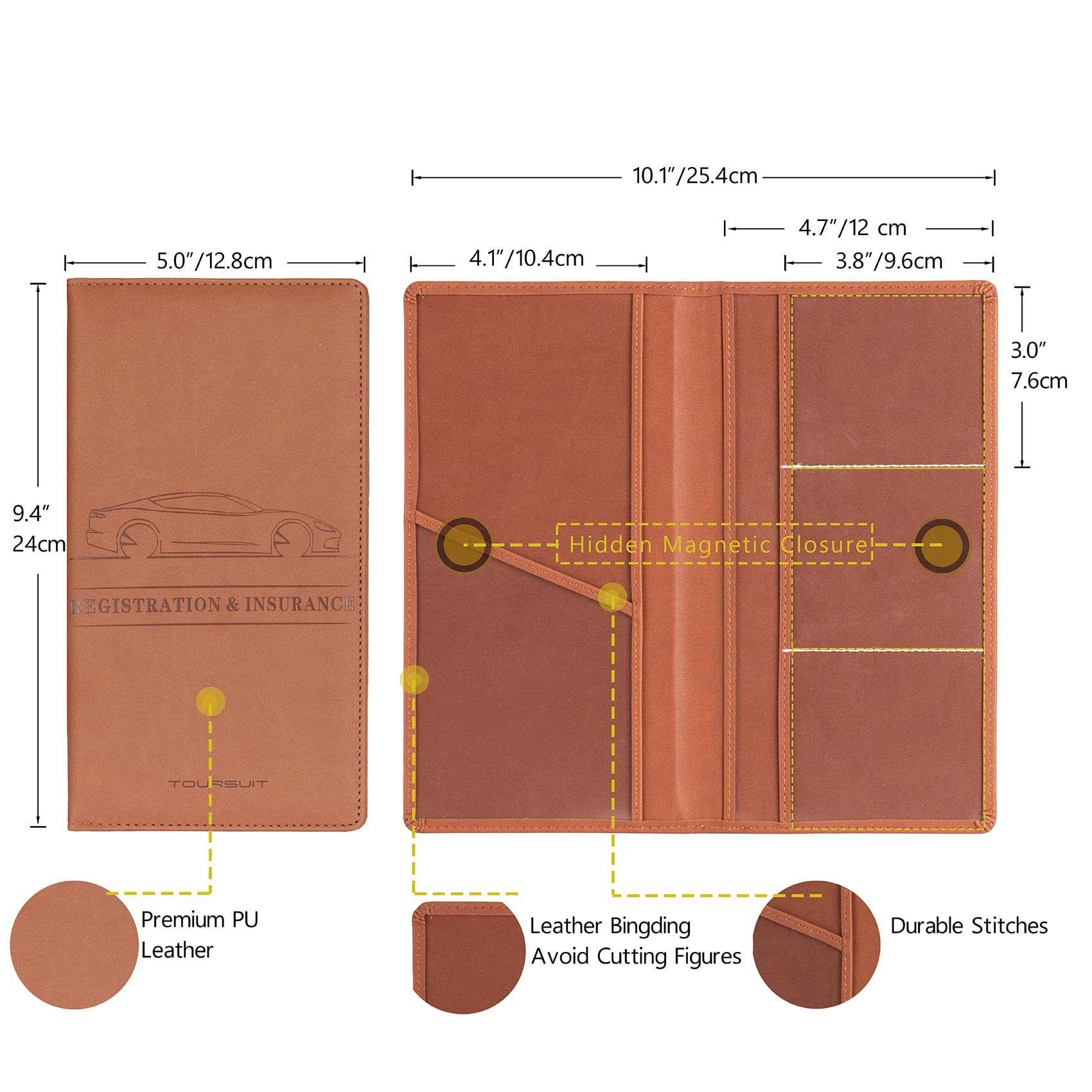 🧲Hidden Magnetic Closure: The glove box document holder are built with hidden magnetic closure, which will keep your car paperwork organizer neat and tidy and ensure the certifications stay closely and and completely protective within the registration pouch.