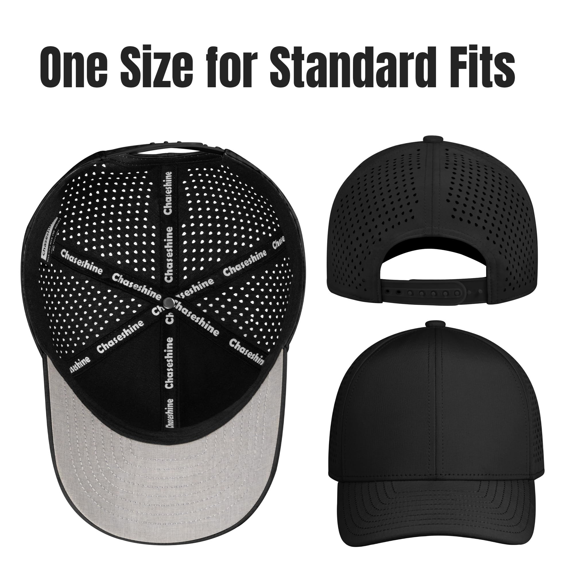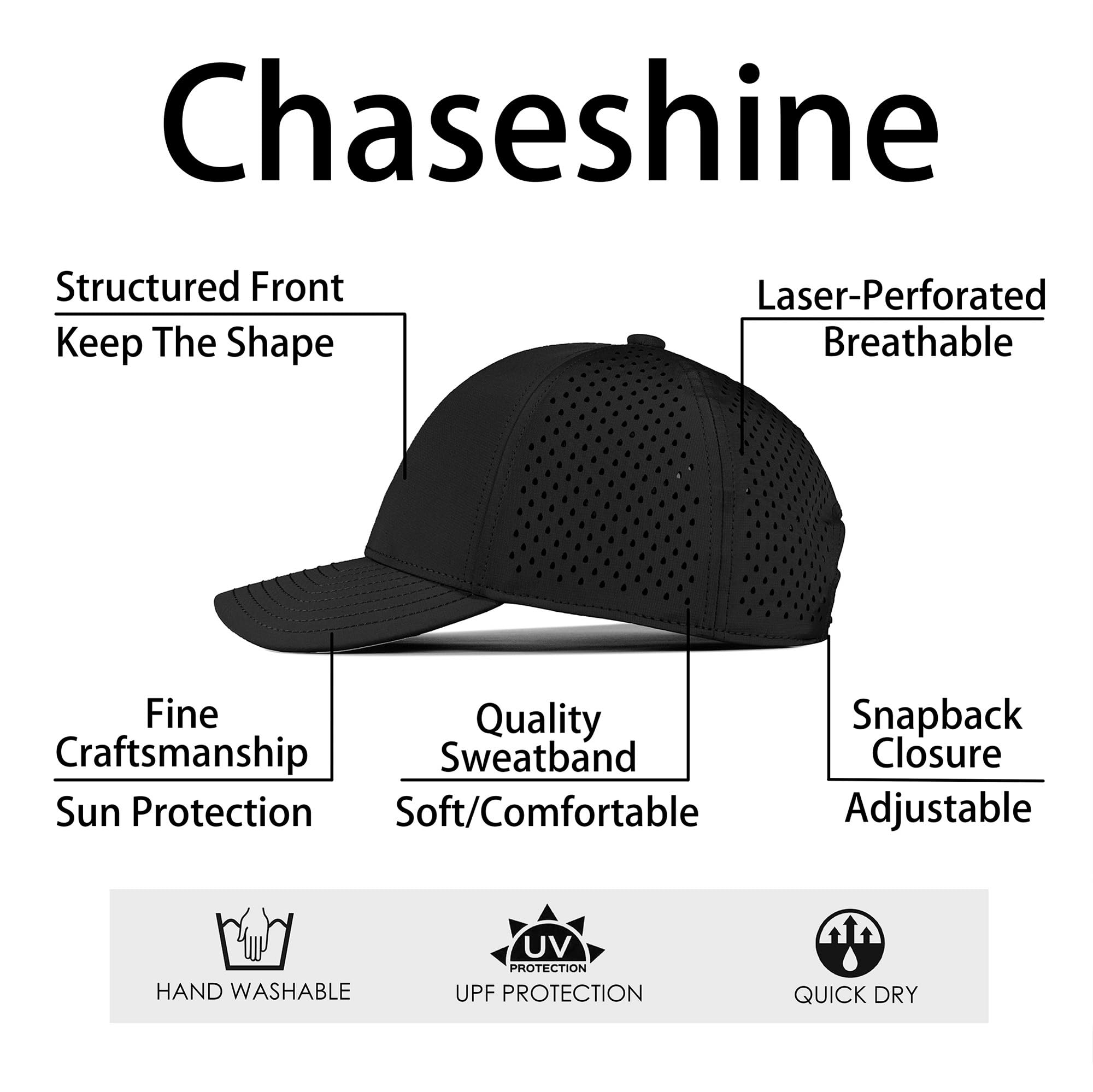 Chaseshine Hat Design: Stylish and functional,structured front panels that maintains shape, 6-panel, curved brim, laser-perforated side & rear panels for breathability, and soft touch adjustable snapback closure