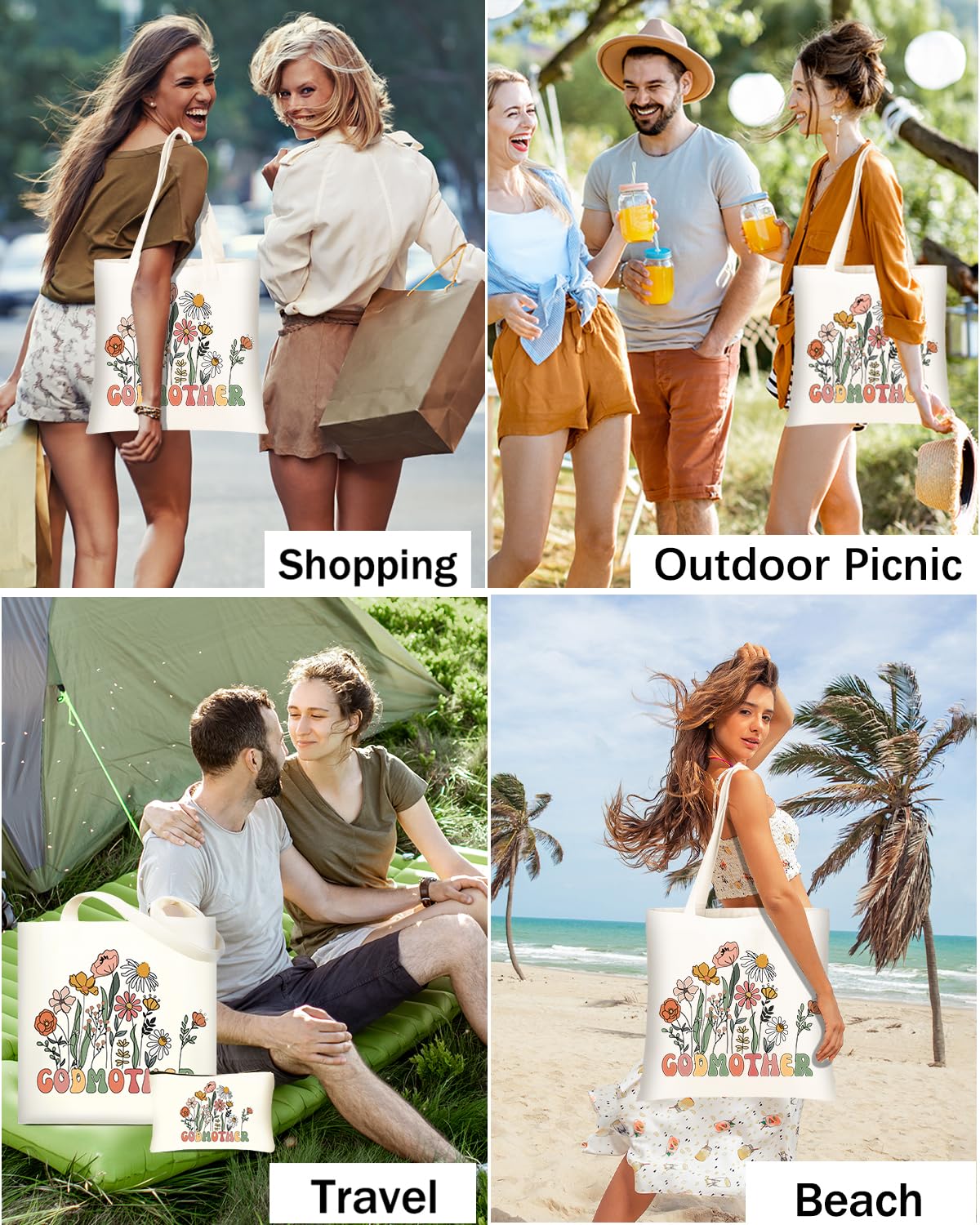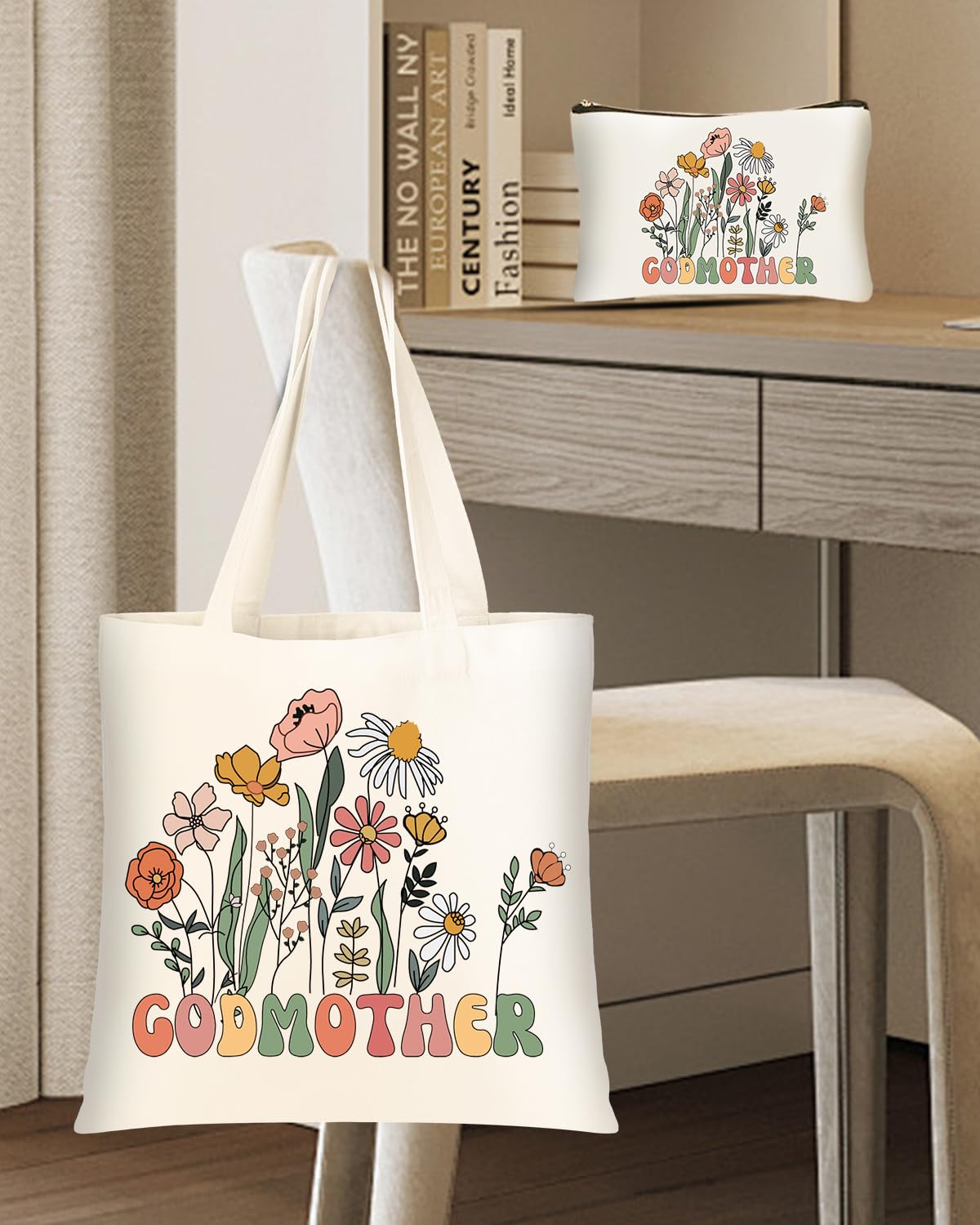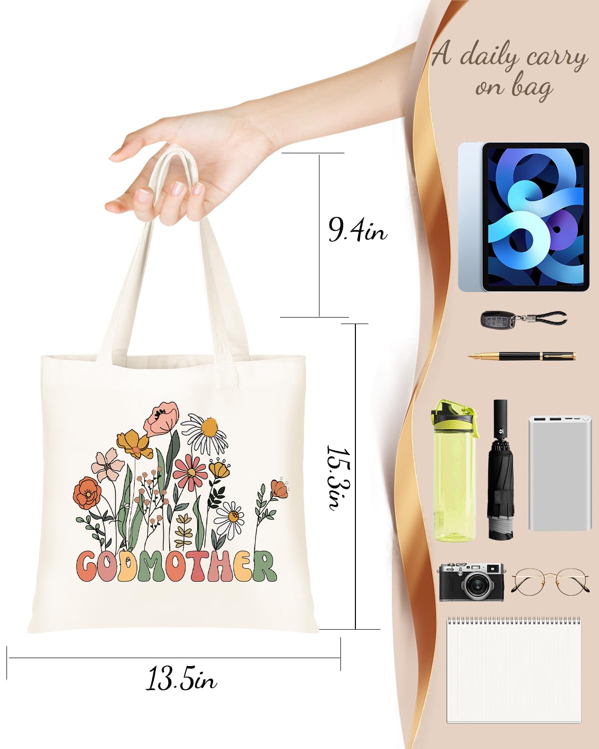 GODMOTHER GIFTS FOR WOMEN: Are you still looking for a heartwarming gift that can convey gratitude and love to your godmother? Look no further. Our canvas tote bag set, specially designed for godmothers, is a great choice. With lovely flower clusters and the exclusive “GODMOTHER” logo, it’s full of heartfelt intentions, allowing your godmother to feel the happiness of being cherished at all times