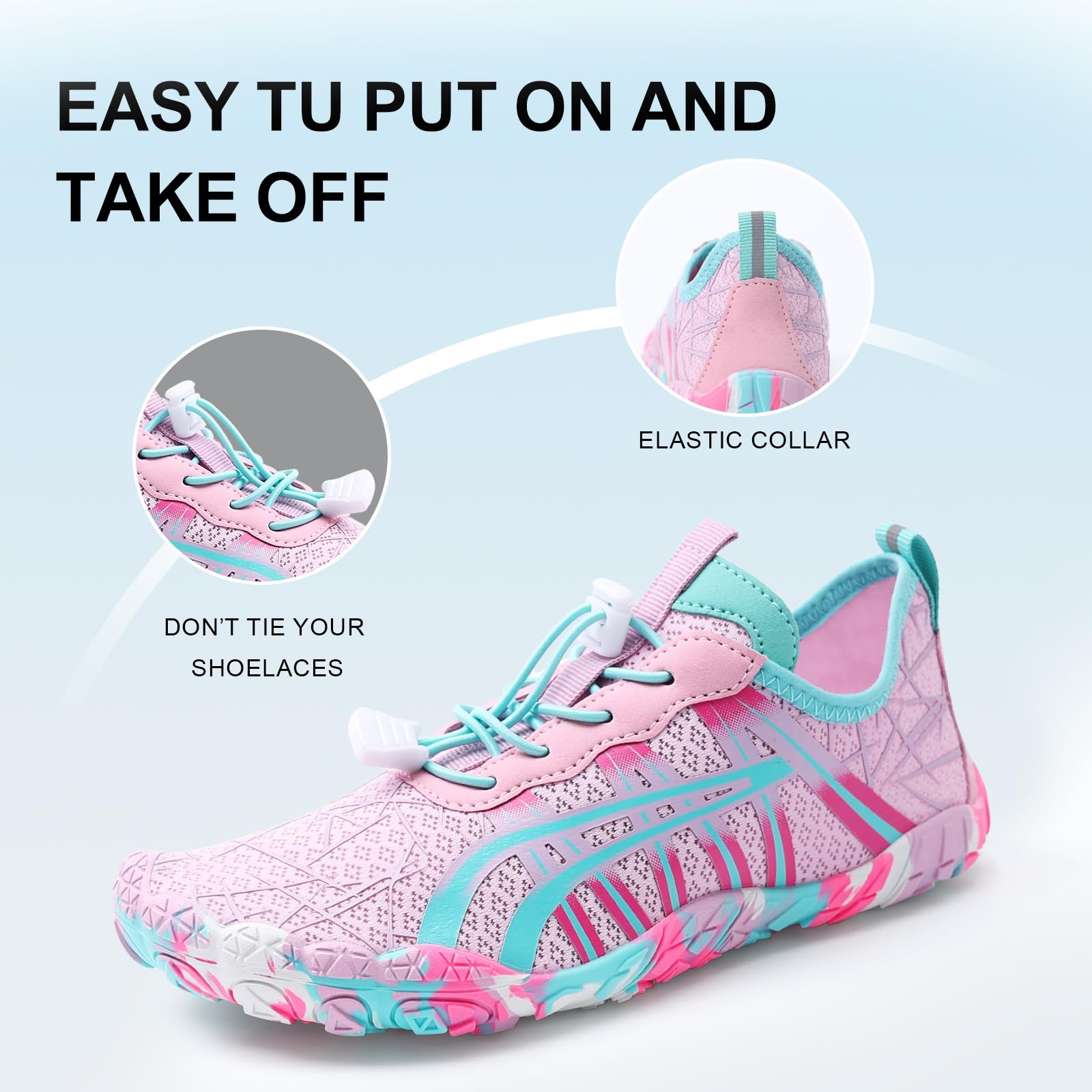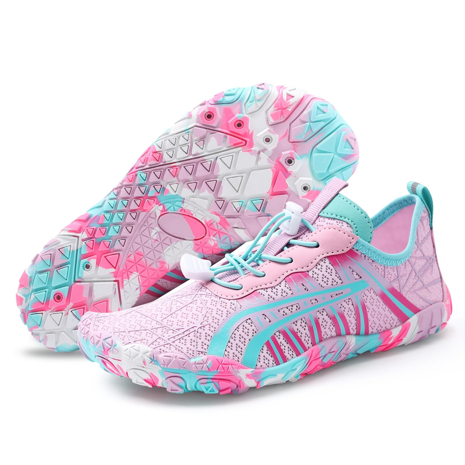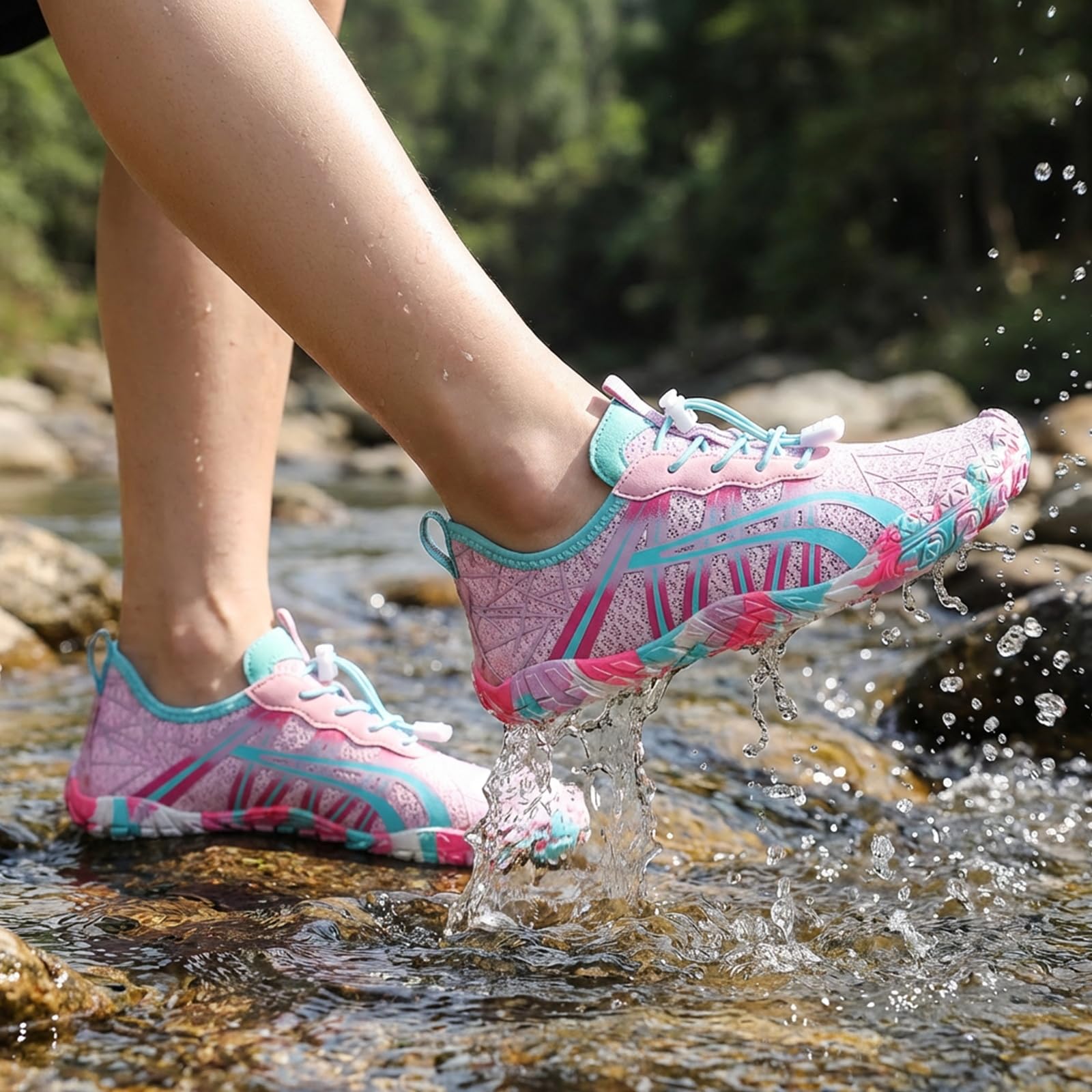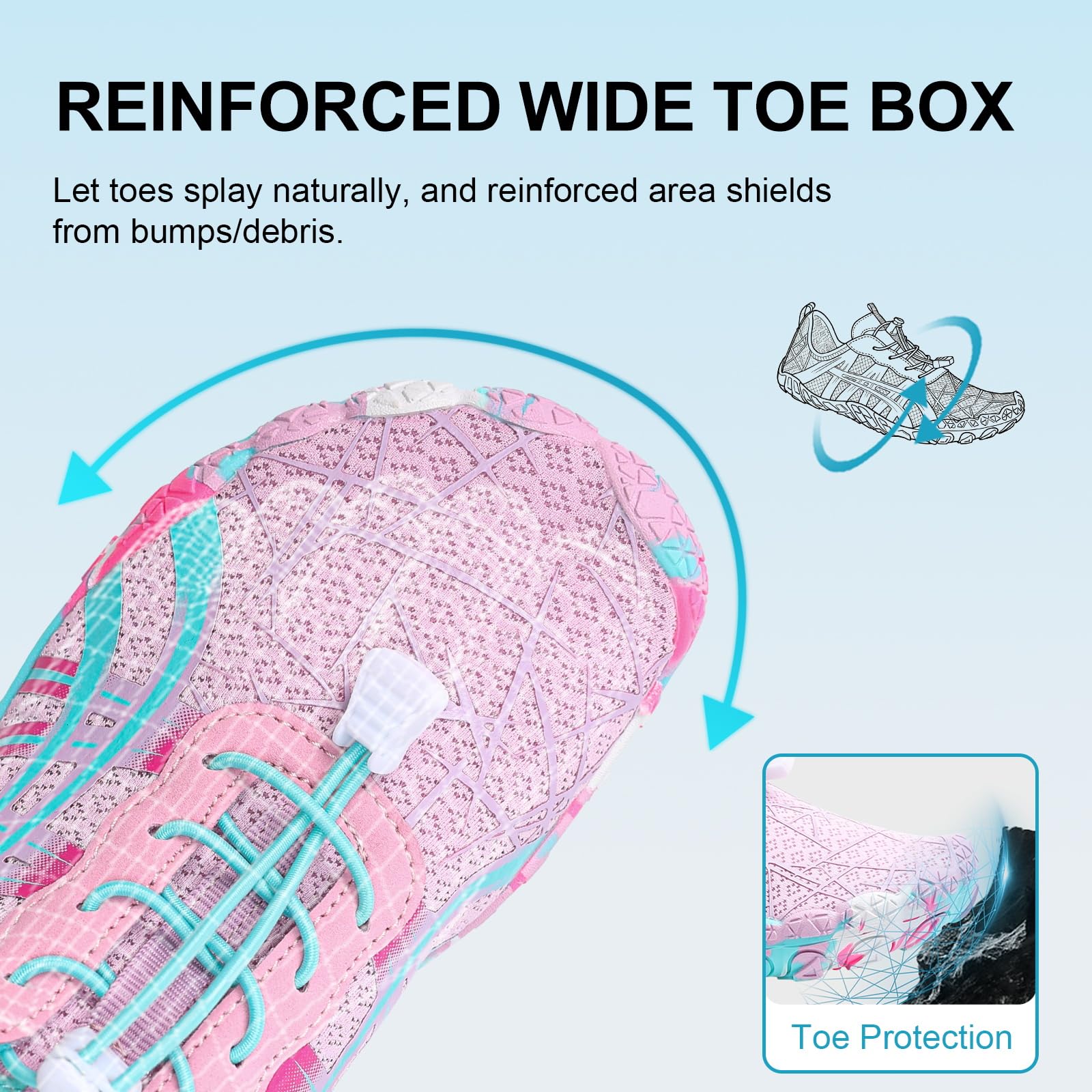 Wide Toe Box - Compared to the traditional trail running shoes, this women's barefoot shoe has a wider toe box design, which allows your toes to move and spread freely, promoting foot strength and flexibility. And this barefoot shoes has upgrade elastic drawstring allows you to quickly adjust the tightness of shoes and avoid the annoyance of tying your shoes.
