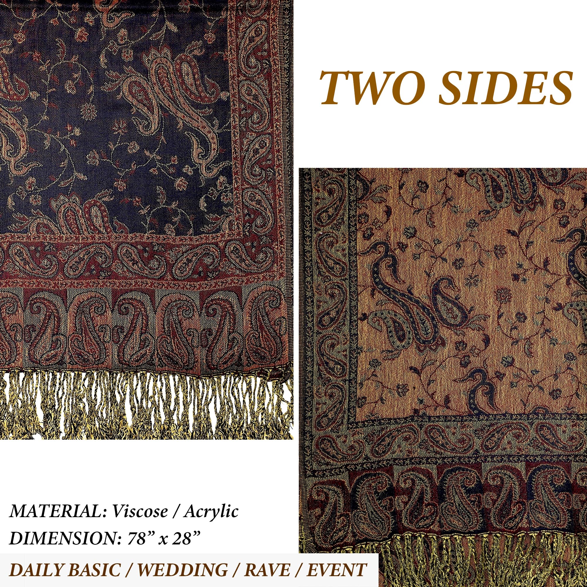 ✔️ Exotic Tapestry Look with Reversible Design – This reversible paisley shawl wrap for women features two beautiful color tones in one piece. It complements everything from evening gowns to rave outfits for men and women, offering vibrant style with graceful comfort.