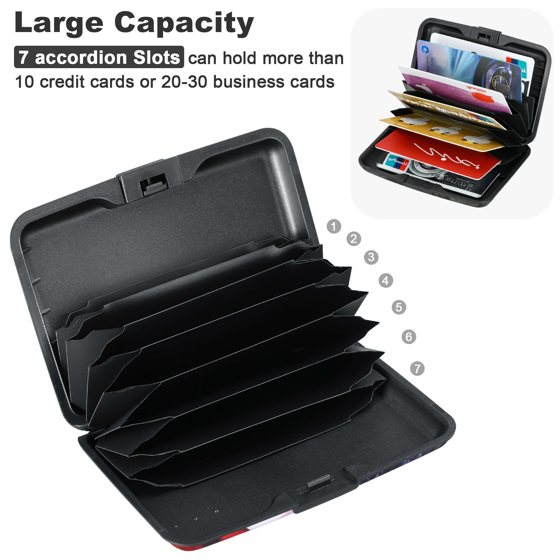 Latches safely and securely when not in use. Rounded corner wouldn't damage on your clothes. With 7 accordion Slots, Capacity for up to more than 10 credit cards or more than 20 business cards.