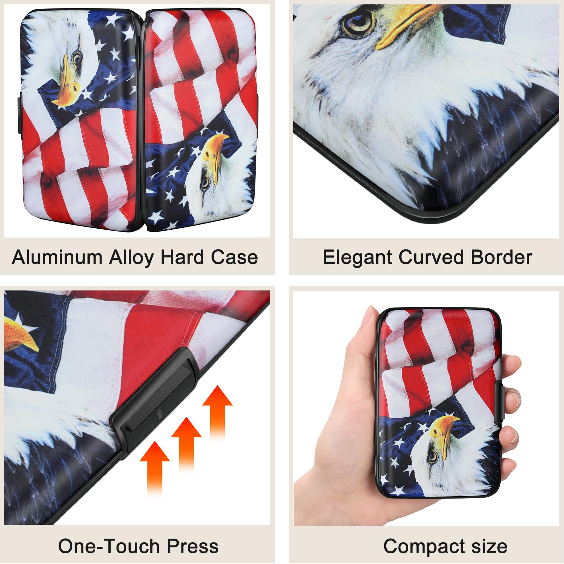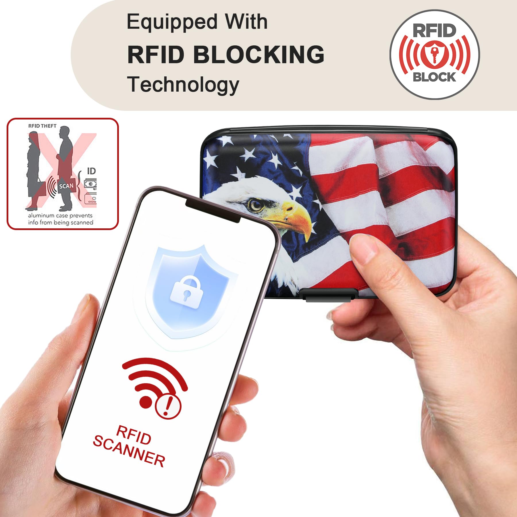 This credit card holder is made of aluminum shells, ABS plastic frame and clasp closure, RFID-blocking will protect your card data from RFID scanners and readers.