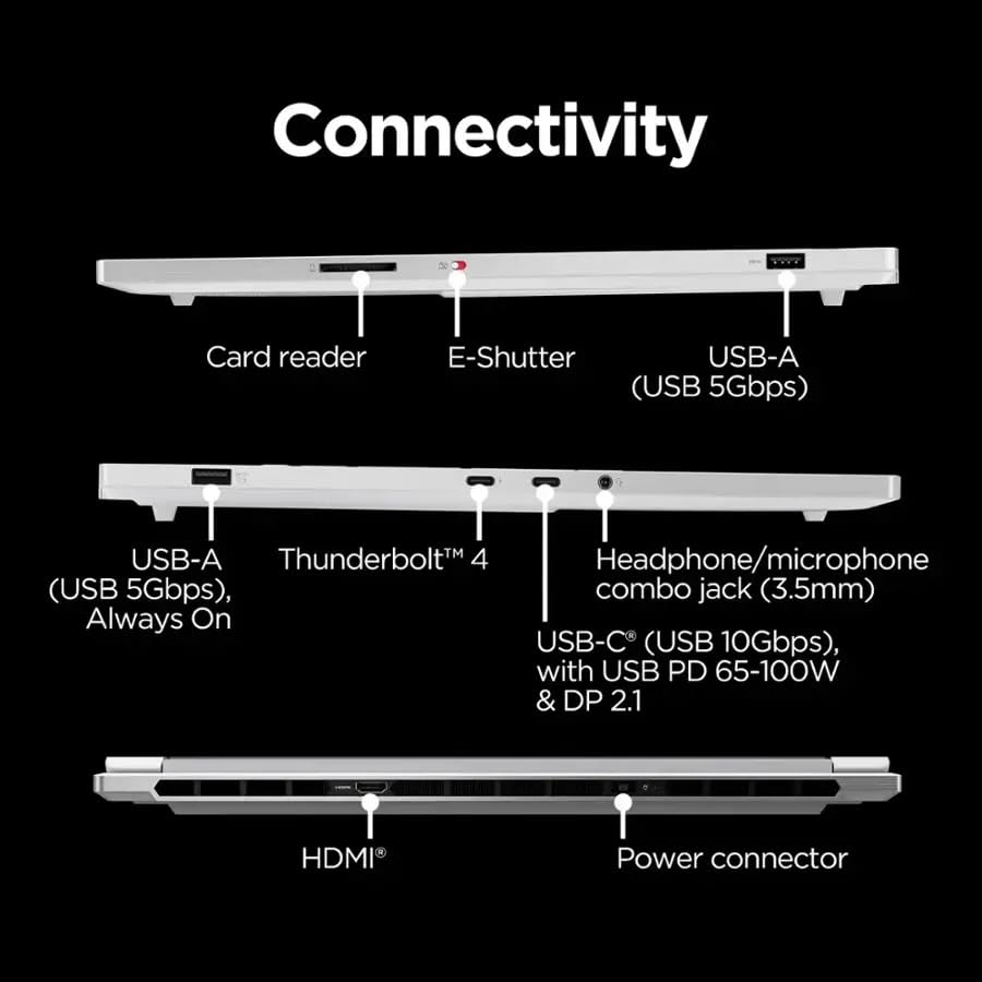 Disclaim: We specialize in computers with personalized configurations. The factory packaging may be unsealed for installation of upgrades to meet the advertised specifications. One-year warranty from Black Tech LLC on upgraded SSD. One-year Premium Warranty from manufacturer on remaining components PC Series: Legion 7i Gen 10 Intel (16″) with RTX 5070 Gaming Laptop, Glacier White Operating system: Windows 11 Home 64, AI-Powered Gaming PC Display: 16" WQXGA (2560x1600) OLED 500nits (Typical) / 1100nits (Peak) Glossy, 100% DCI-P3, 240Hz, DisplayHDR™ True Black 1000, Dolby Vision®, G-SYNC®, Low Blue Light, High Gaming Performance, Flicker Free Processor: Intel® Core™ Ultra 9 275HX Processor (E-cores up to 4.60 GHz P-cores up to 5.40 GHz) Graphics: NVIDIA® GeForce RTX™ 5070 8GB GDDR7, Boost Clock 2347MHz, TGP 115W, 798 AI TOPS NPC: Integrated Intel AI Boost, up to 13 TOPS Memory: 32 GB: 2 x 16 GB SO-DIMM DDR5-5600; Two DDR5 SO-DIMM slots, dual-channel capable; Up to 32GB DDR5-5600 offering each Storage: 2 TB (1 + 1 TB) SSD M.2 2280 PCIe® 4.0x4 NVMe; Up to two drives, Two M.2 2280 PCIe® 4.0 x4 slots. Speaker: Stereo speakers, 2W x2, audio by HARMAN, optimized with Nahimic Audio, Smart Amplifier (AMP) Keyboard: Per-Key RGB Backlit, White - English Touchpad: Buttonless glass surface multi-touch touchpad, supports Precision TouchPad (PTP), 75 x 120 mm (2.95 x 4.72 inches) Communications: Wi-Fi® 7, 802.11be 2x2 + BT5.4 Camera: 5.0MP with E-shutter Battery: 4 Cell 84Wh, Up to 8 hours on average usage, 245W Slim Tip (3-pin) Size and Weight: 361.7 x 263.4 x 15.9-17.9 mm (14.24 x 10.37 x 0.63-0.70 inches), Less than 2.0 kg (4.52 lbs) Color: Glacier White Ports & Slots 1x USB-A (USB 5Gbps / USB 3.2 Gen 1) 1x USB-A (USB 5Gbps / USB 3.2 Gen 1), Always On 1x USB-C (USB 10Gbps / USB 3.2 Gen 2), with USB PD 65-100W and DisplayPort 2.1 1x USB-C (Thunderbolt 4 / USB4 40Gbps), with USB PD 65-100W and DisplayPort 2.1 1x HDMI 2.1, up to 8K/60Hz 1x Headphone / microphone combo jack (3.5mm) 1x Card reader 1x Power connector