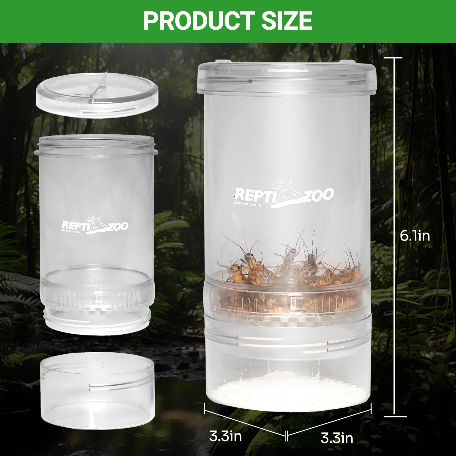 【Reptile Cricket Keeper】: REPTI ZOO Reptile Cricket Powder Mixer Kit features crystal-clear visibility and escape-proof 6" height. The twist-lock lid with ventilation holes safely contains cricket while blending calcium powder for reptiles through patented shaking technology;