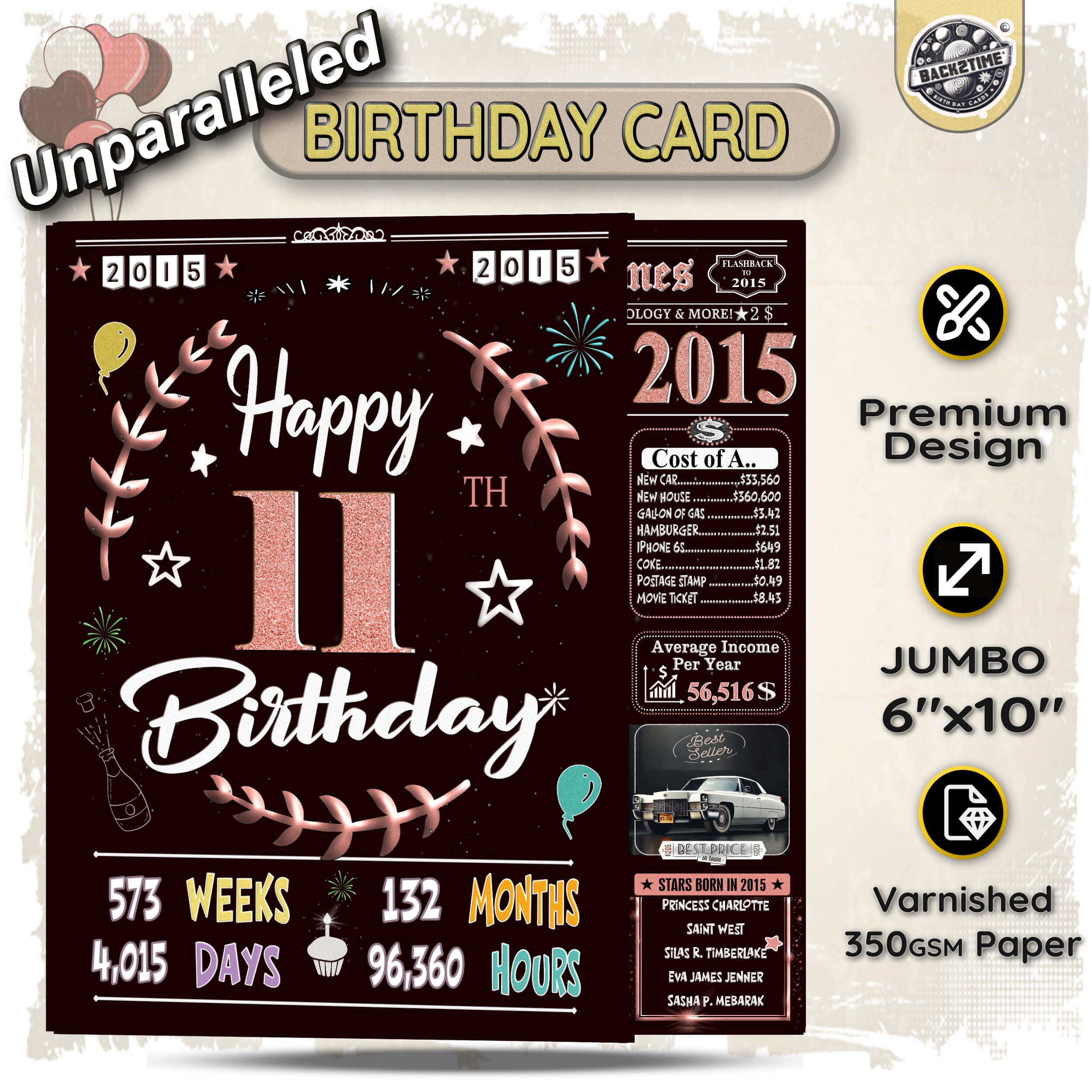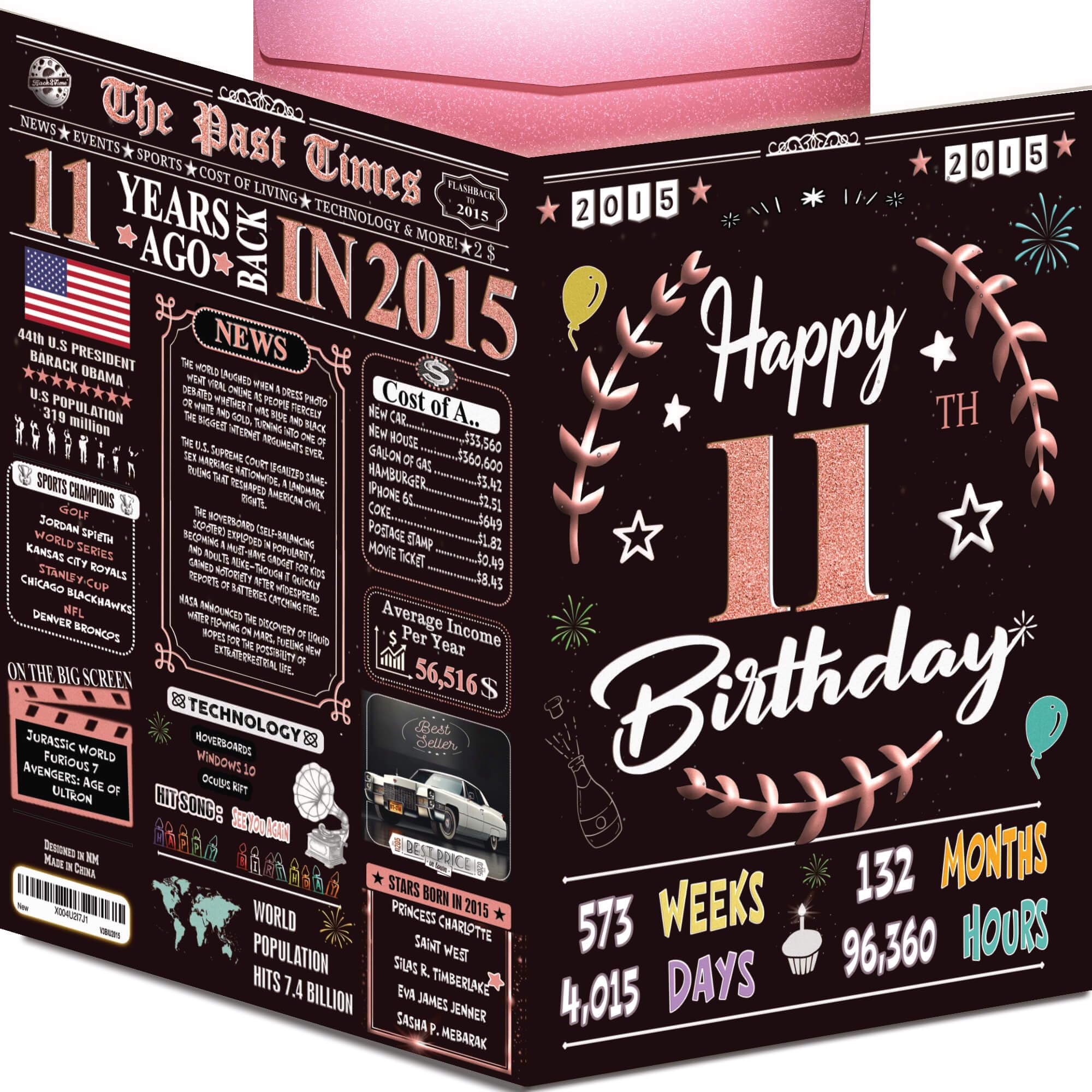 π 11TH BIRTHDAY CARD BACK IN 2015 π Celebrate birthday with this premium rose gold design. Perfect for women, You are looking for a card for sister, wife, girl, cousin, friend β€οΈ. Spread happiness and create unforgettable memories! Ideal for Gifts, 11 Decorations. Happy Birthday Cards for Women, Happy Birthday Card for Her, 11 years old Birthday Decorations with elegant for teen girl young woman female bestie grandma nana stepmom auntie cousin friend sorority sister
