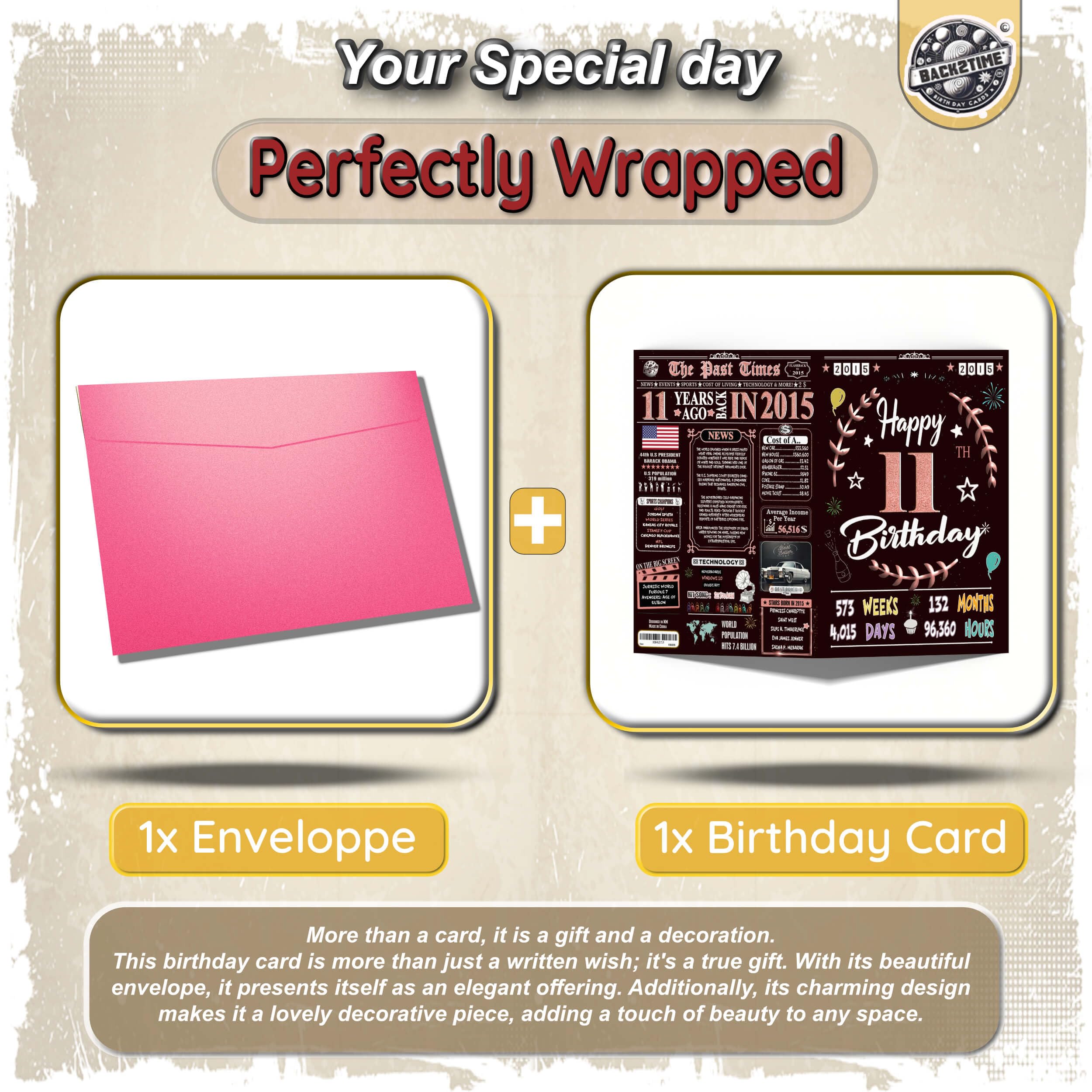 β GUARANTEED: Proudly designed in the USA β Enjoy a hassle-free return policy. Our rose gold birthday cards promise satisfaction and delight with every purchase! Gift for mother, aunt, cousin, niece, godmother, stepmother, stepsister, mother-in-law, sister-in-law, adult daughter, granddaughter. 11th Birthday Gifts for Women, soft rose pastel elegant chic design romantic accents feminine vibe classy look celebration. Birthday gift for goddaughter Born in 2015β€οΈ.