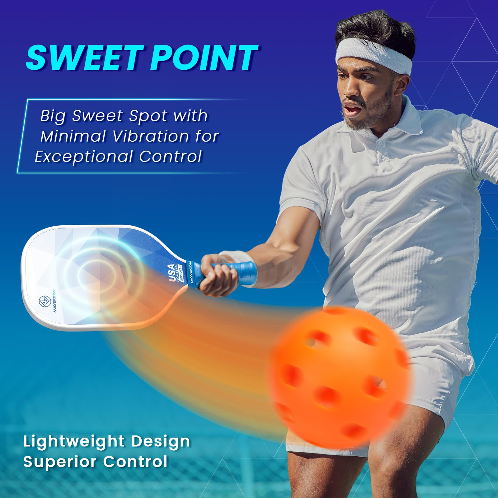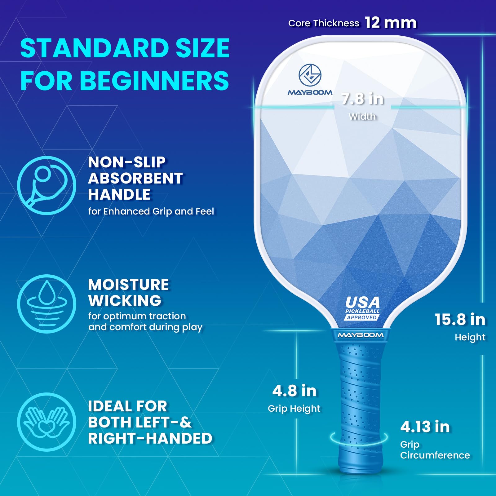 USAPA Approved Pickleball Paddle: Mayboom pickleball paddles are tested and approved by the USAPA for high safety and professionalism in tournament pickleball play in the US and international events. Mayboom pickle ball set use a lightweight honeycomb core with a fiberglass face, paired with advanced technology for balanced control and powerful shots, enhancing your playing experience in the game of Pickleball