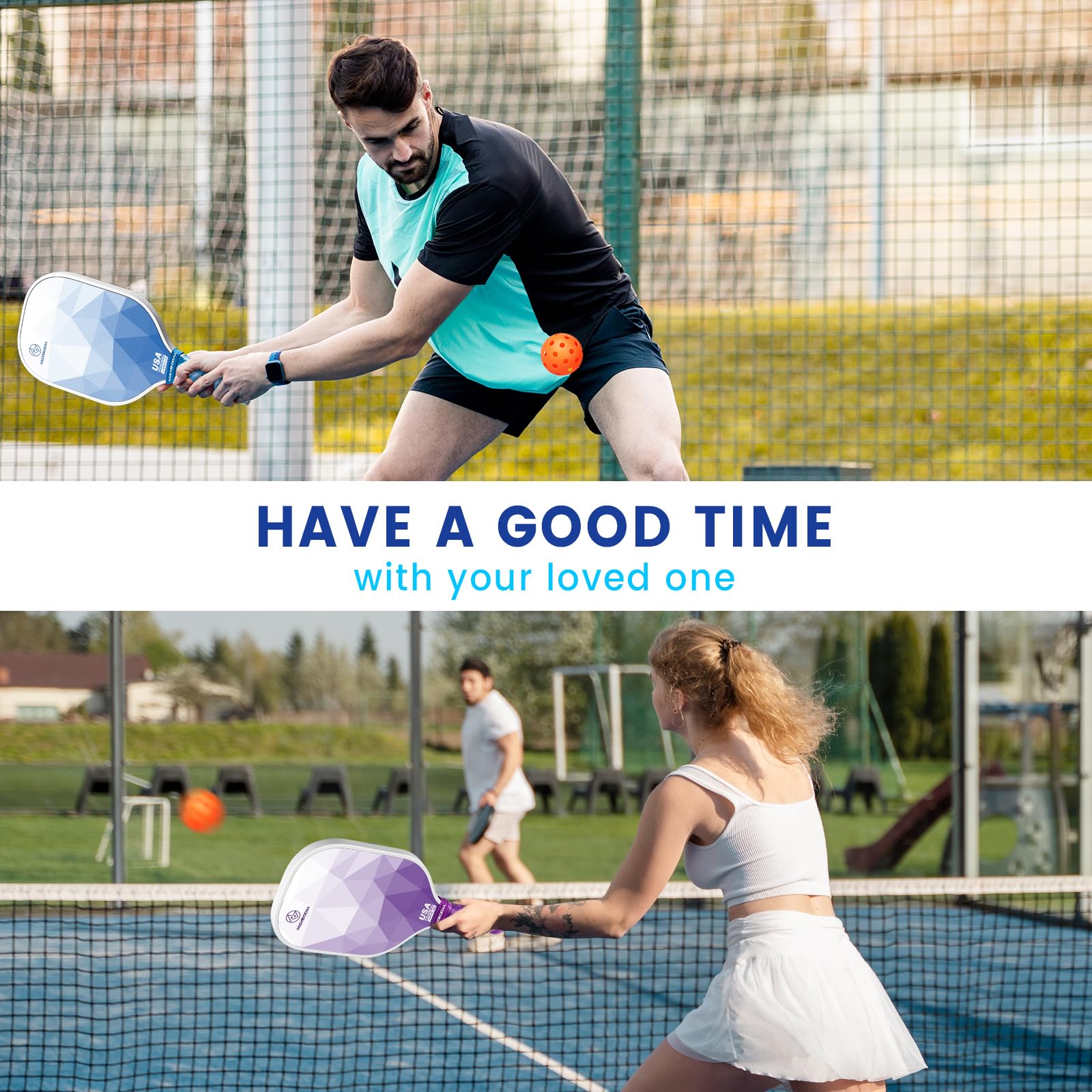 Perfect Kit for Beginners: This pickleball racket and balls set comes with all the necessary equipment to outfit a court. The set contains 2 pickleball paddles, a durable bag, and 4 balls. With pickle ball rackets 2 pack, you can promote interaction with family and friends and have great fun. These are ideal gifts for men and women