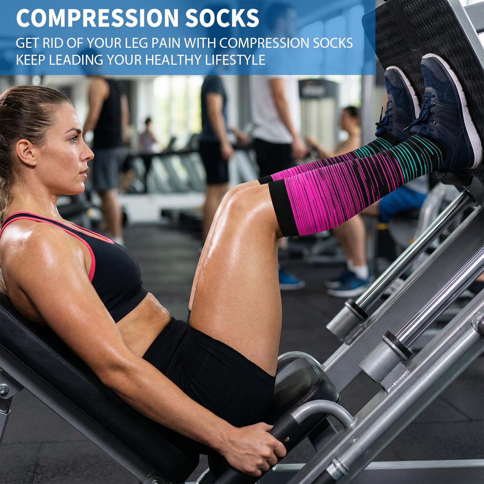 REDUCE INJURIES - Provide mild squeezing for warmness and enhance blood moving through your legs. Remove stress and stimulate every cell, relieves symptoms varicose veins and excess fluid retention. Help relieve pain & discomfort related to plantar fasciitis, Provides true graduated compression to support your legs, reduce fatigue, soreness, cramping and prevent injuries at the same time.