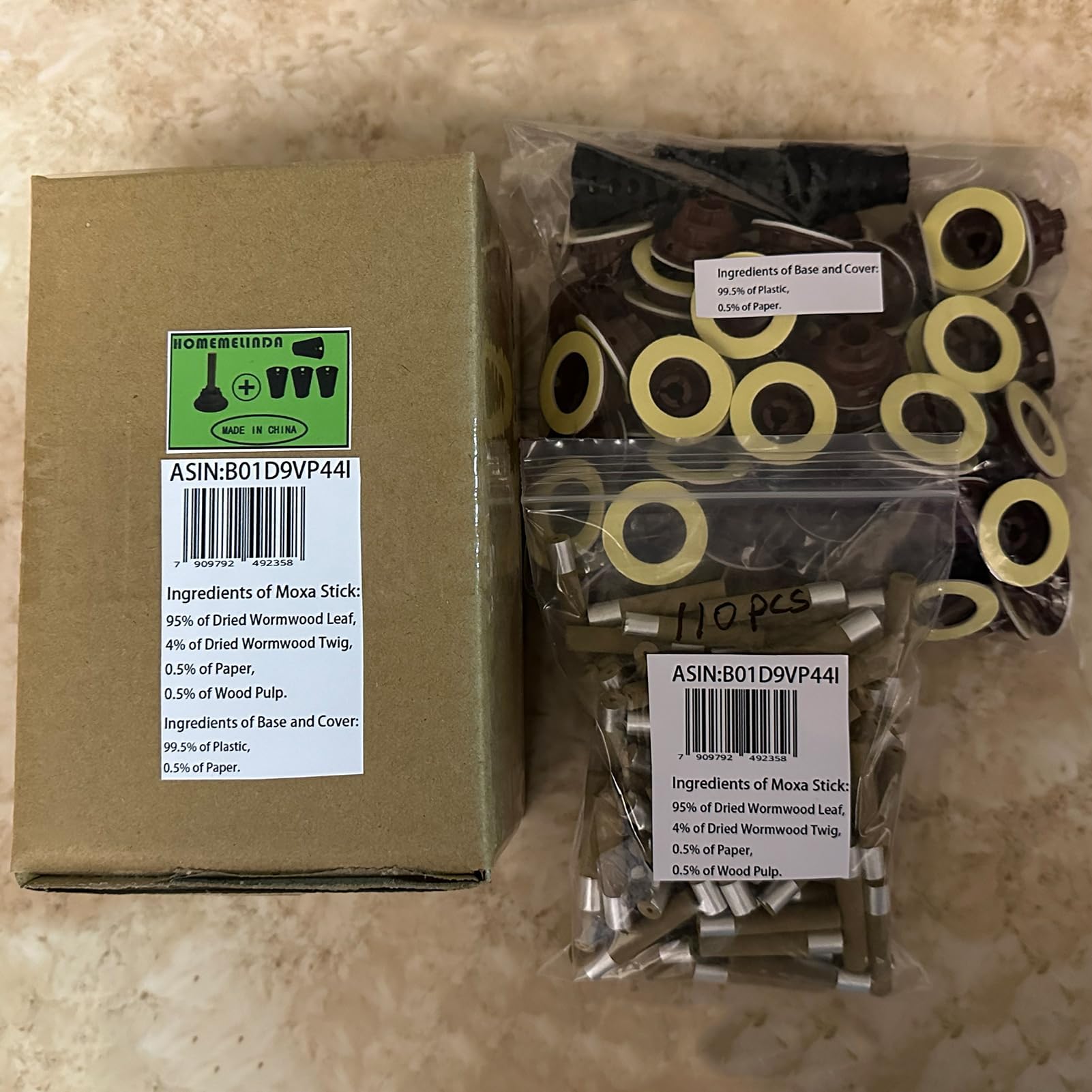 Package Include 100 sets of 45:1 Mini Moxa Sticks with Updated Base, 4 pcs Protective Covers.