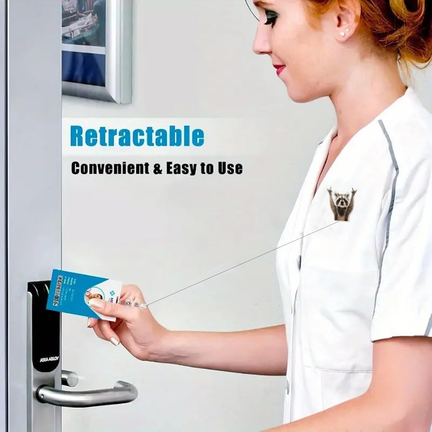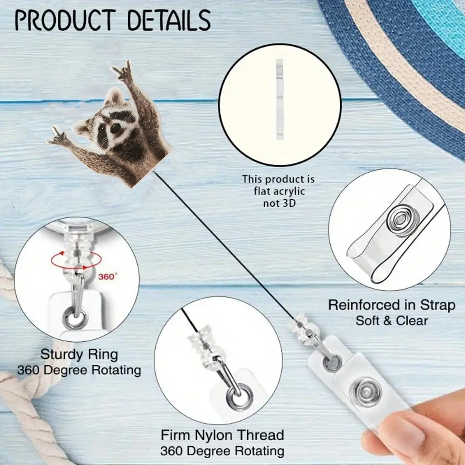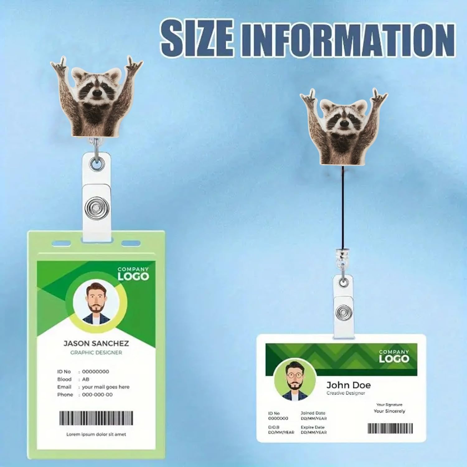 Badge Holder Specification:Funny raccoon badge reel Diameter 1.77 inches (4.5cm), retract extension 25.5in(65cm) nylon rope. Sturdy alligator clip never drops off your ID badge