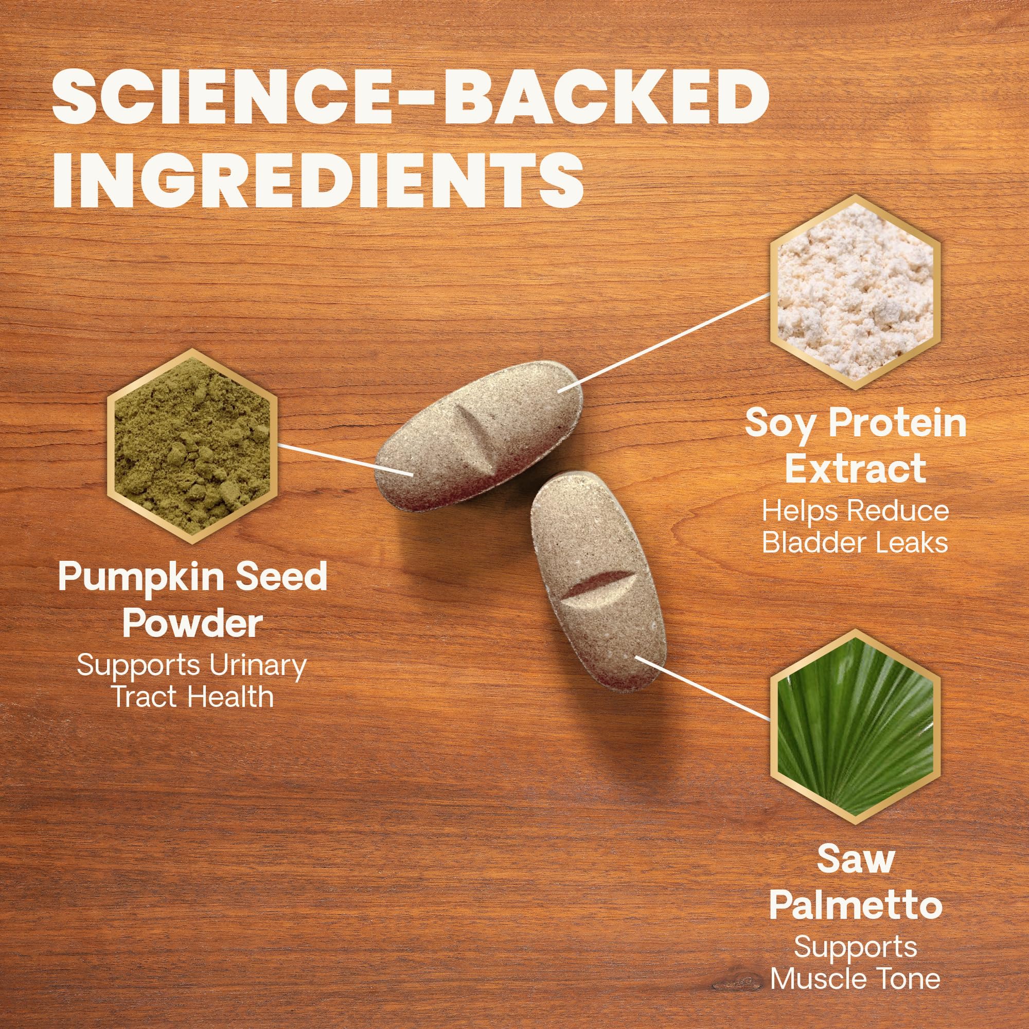 Bladder Control for Dogs: An advanced combination of non-hormonal ingredients, including pumpkin seed, saw palmetto, wild yam, and olive leaf work together to support normal bladder function and bladder health in dogs of all ages, sizes, and breeds