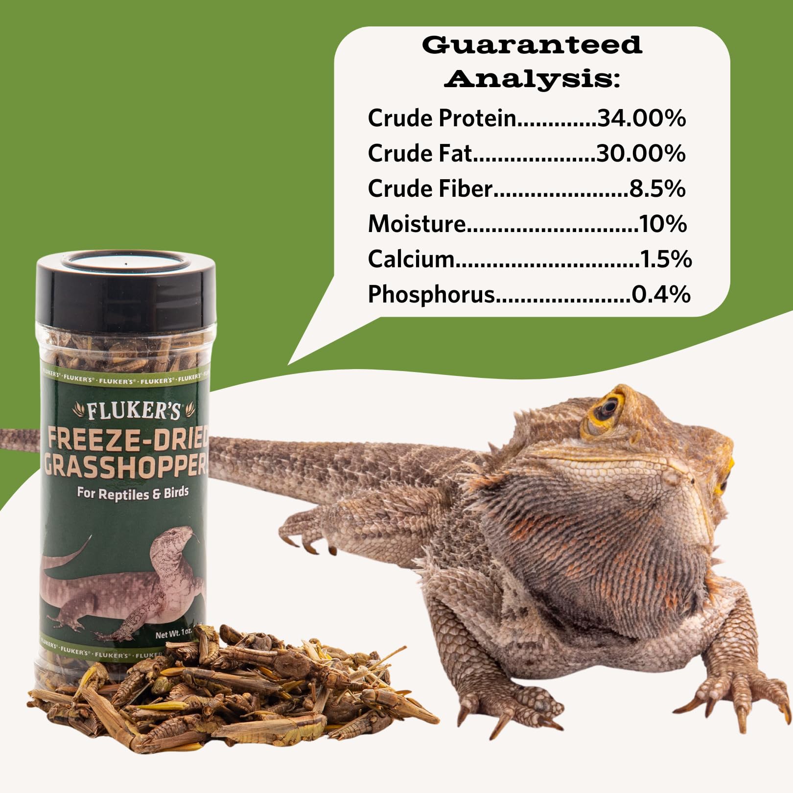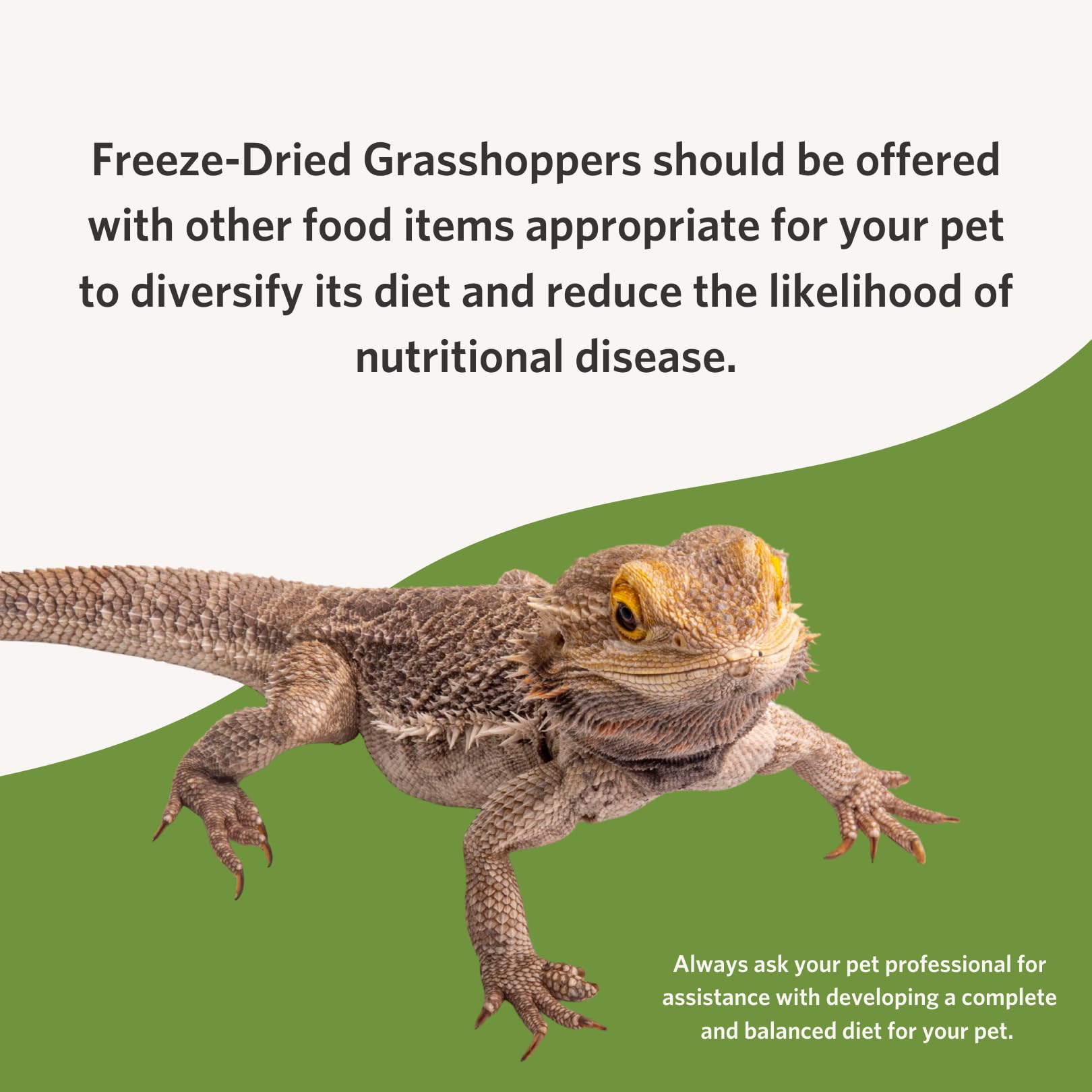 Fluker's Freeze-Dried Grasshoppers are a great alternative to help diversify your pet's diet, which increases the overall nutritional quality of the diet and reduces the likelihood of developing life threatening nutritional diseases.