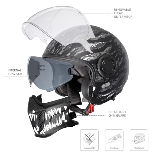 【CONVERTIBLE DESIGN】This helmet offers a versatile design that smoothly transitions between a full-face and open-face configuration, providing flexibility to accommodate various riding conditions and personal preferences.