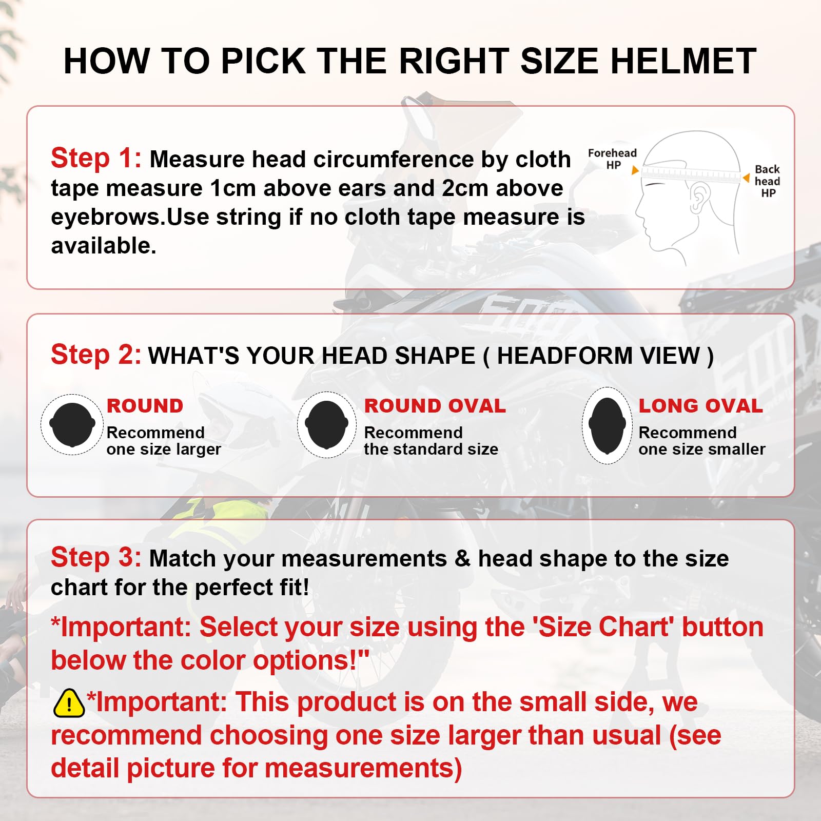 【Adult-size Racing Helmets】Our helmets are available in 5 sizes (S, M, L, XL, XXL) to fit all adult riders. Measure your head circumference for a perfect fit. Choose the size based on our size chart.