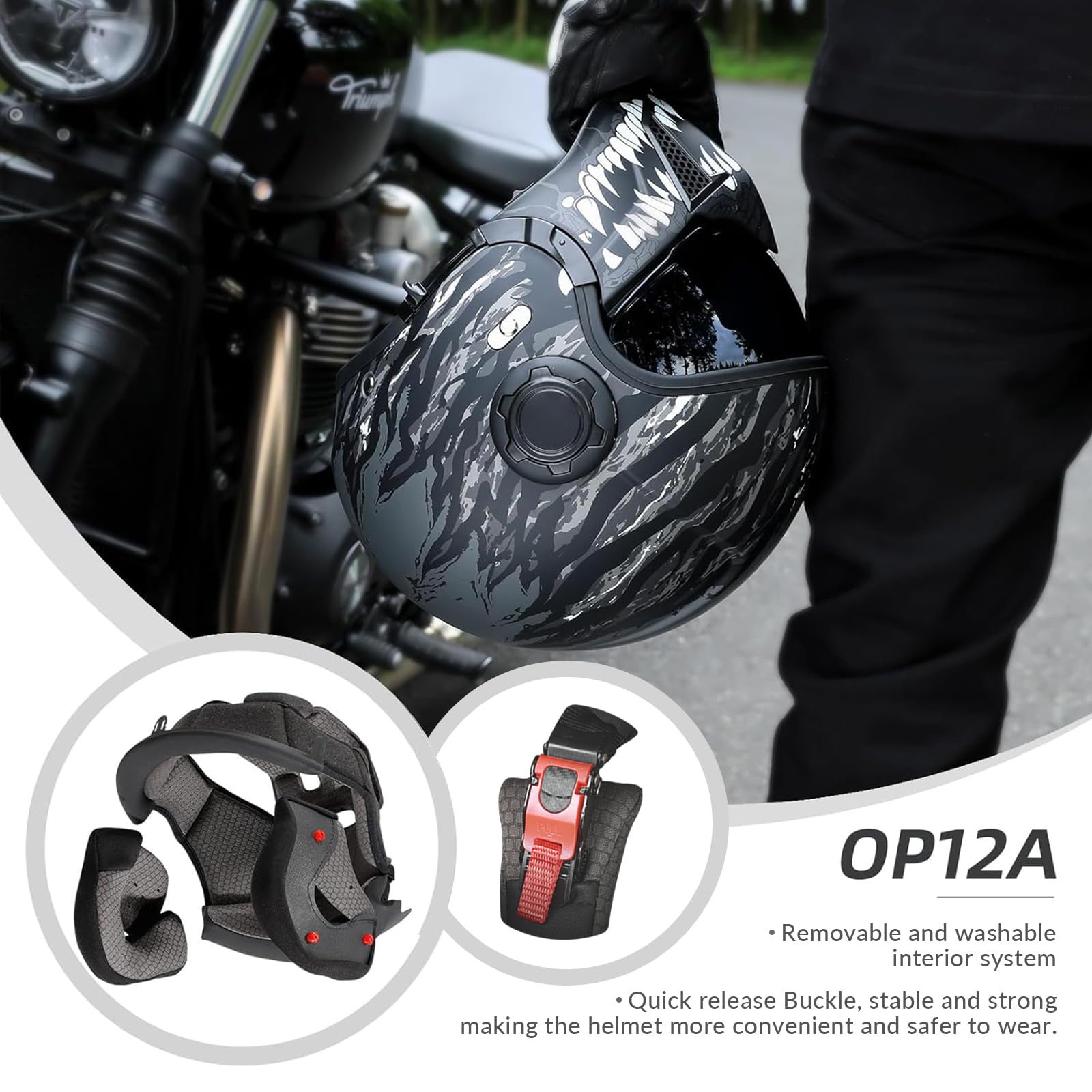 【Comfortable & Breathable Design】Our adult motorcycle helmets have a removable, washable, and replaceable lining for your comfort and breathability. If you face any issues with our TRIANGLE helmets, contact us anytime. We’ll respond within 24 hours.