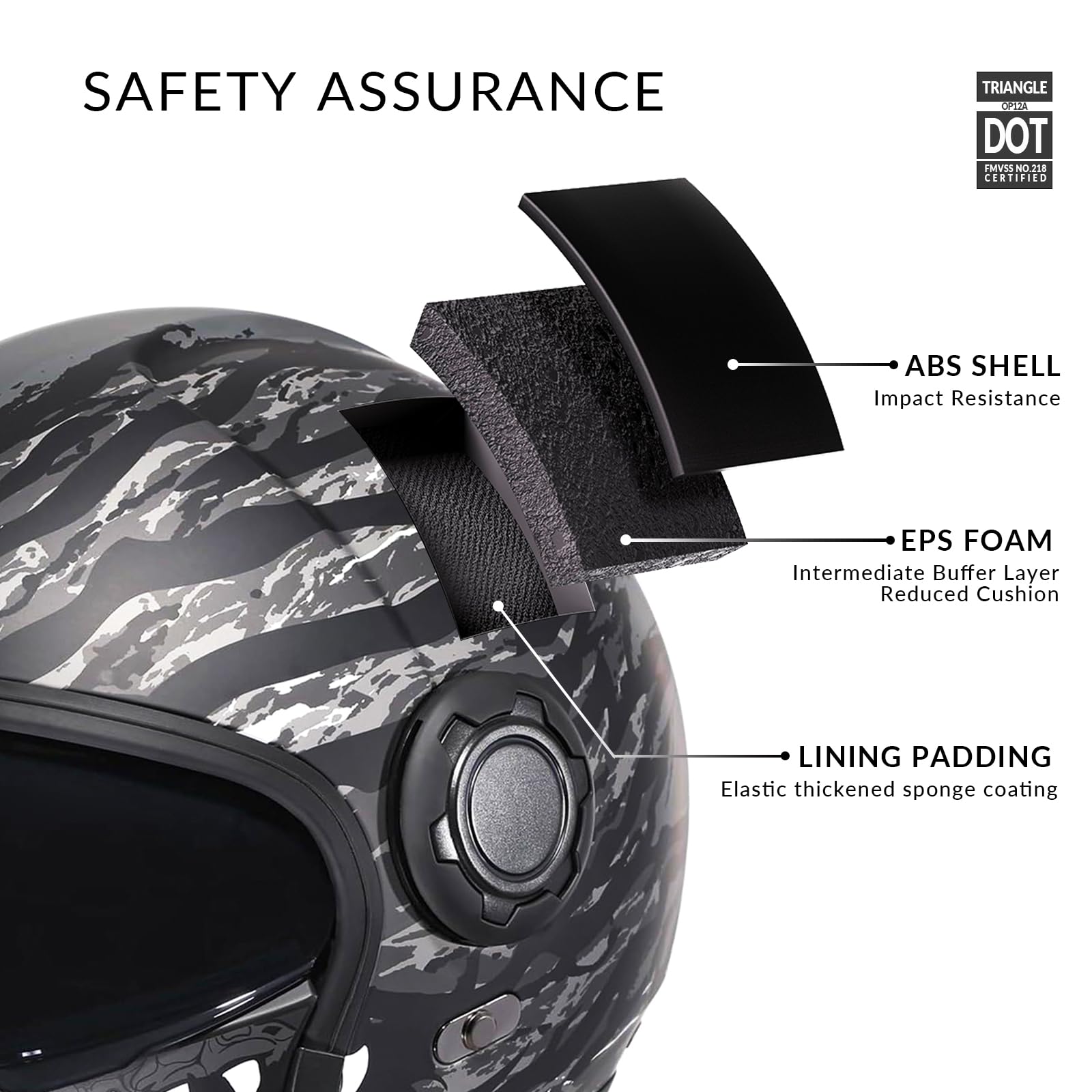 【Safe and Reliable】TRIANGLE motorcycle helmets meet the DOT FMVSS-218 safety standards, using high-quality ABS shell and EPS linings to provide security for your driving. It is a good choice for your motorcycle helmet or adult ATV helmet.