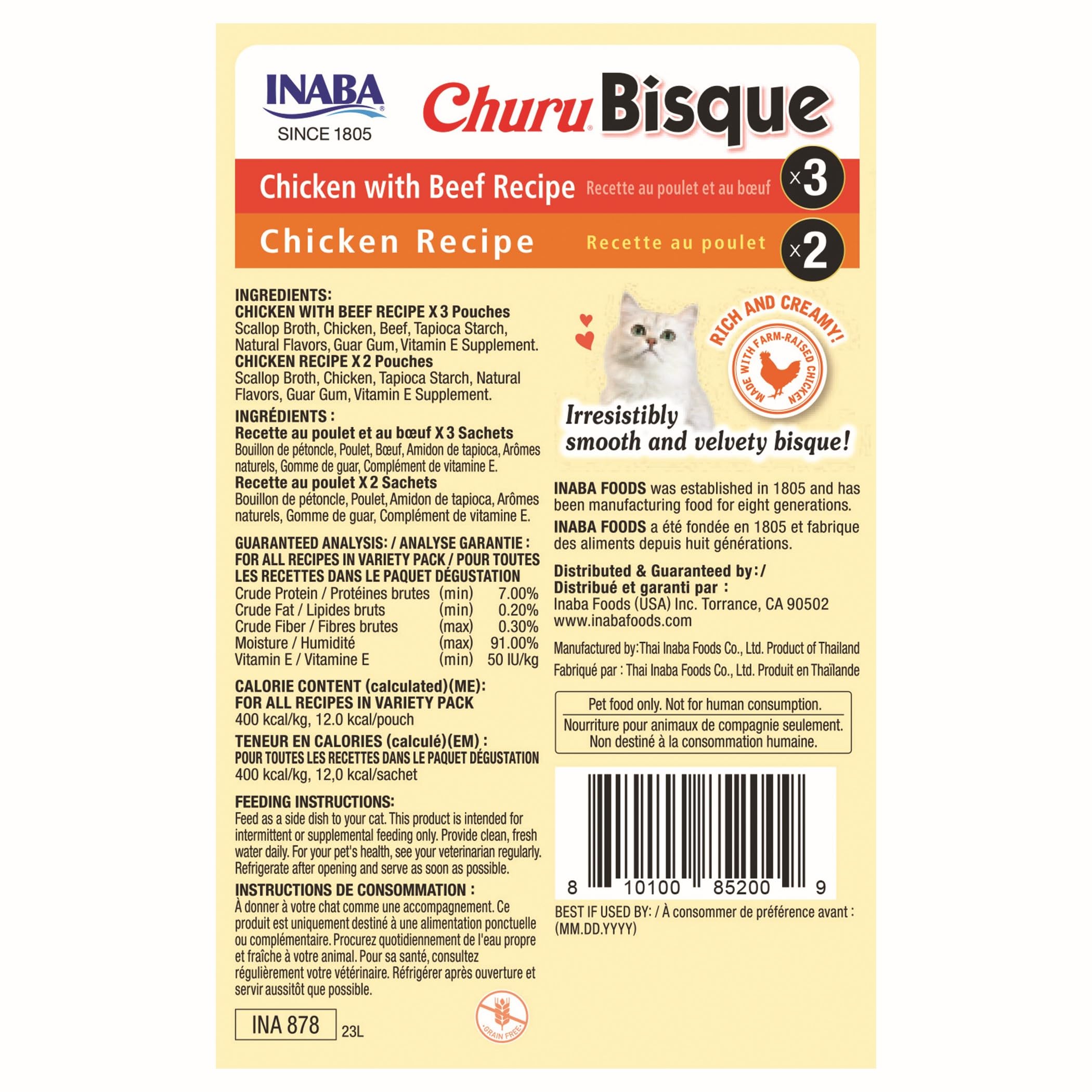 Here at Inaba, we know your cat is a beloved family member. That's why our Churu Bisque Lickable Creamy Purée for Cats is made from high-quality ingredients including farm-raised chicken and wild-caught tuna. Each pouch contains a mouthwatering purée bisque that is both healthy and hydrating with 91% moisture and 16 calories per serving. We've also made it grain-free, preservative-free, carrageenan-free and free from artificial colors. We've added Vitamin E to help support your cat's immune system, so these are a treat you can feel good about feeding your cat. Perfect for all ages-kitten to senior, simply tear open the pouch and pour out the delicious thick bisque. Use as a side dish, complement to a meal, wet/dry cat food topper or as a special treat, your kitties will thank you from the bottom of their paws. Inaba makes snack time fun for you and your cat.