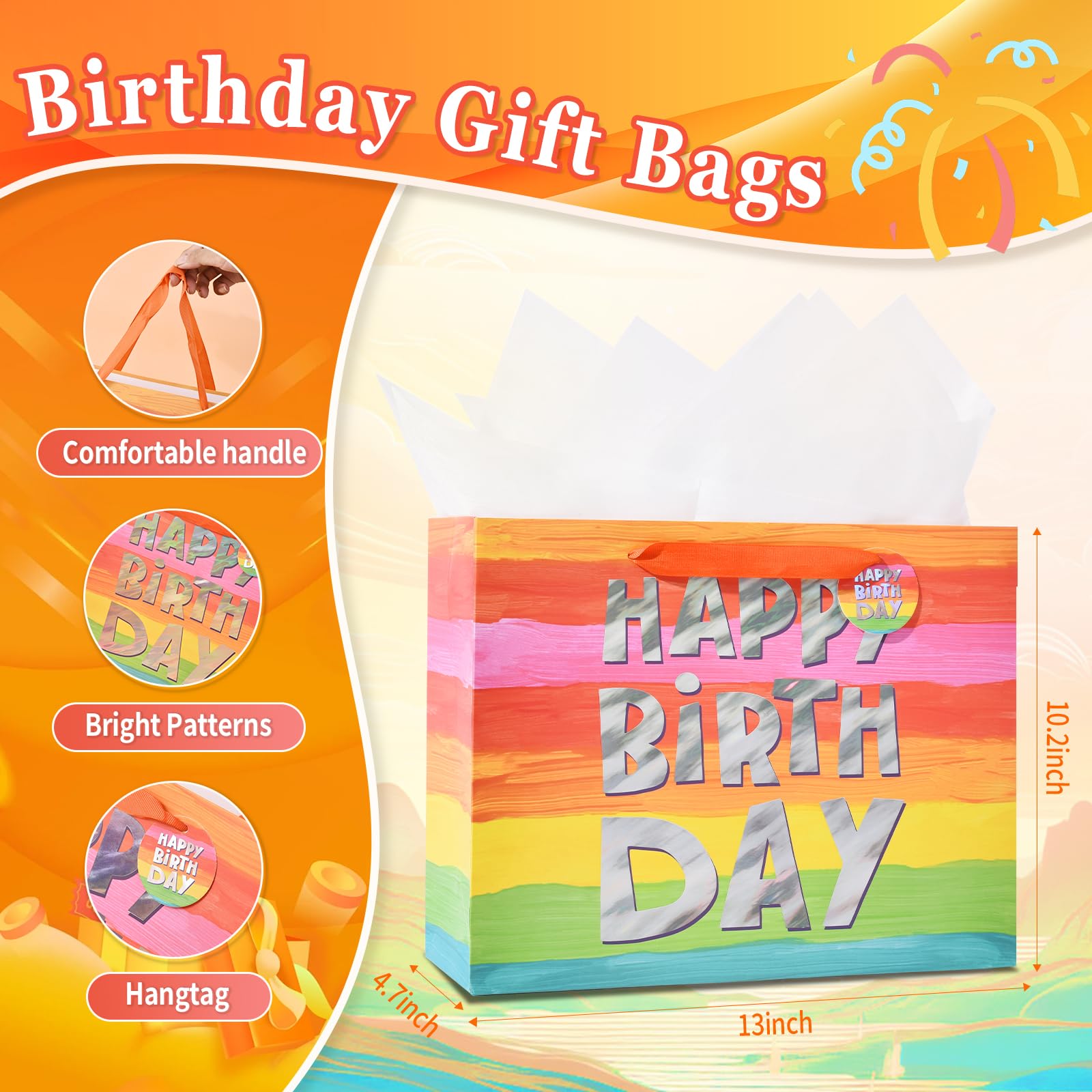 【Best Birthday Gift Bag】This gift bag is beautifully designed with elegant style and the text on the bag is foil stamped. It is perfect for sending with gifts on various occasions, and the beautiful gift bag will greatly increase the recipient's expectation of your gift. Our prepared gift bags will help you express your feelings to the special people in your life. The gift bag can be used without much decoration.