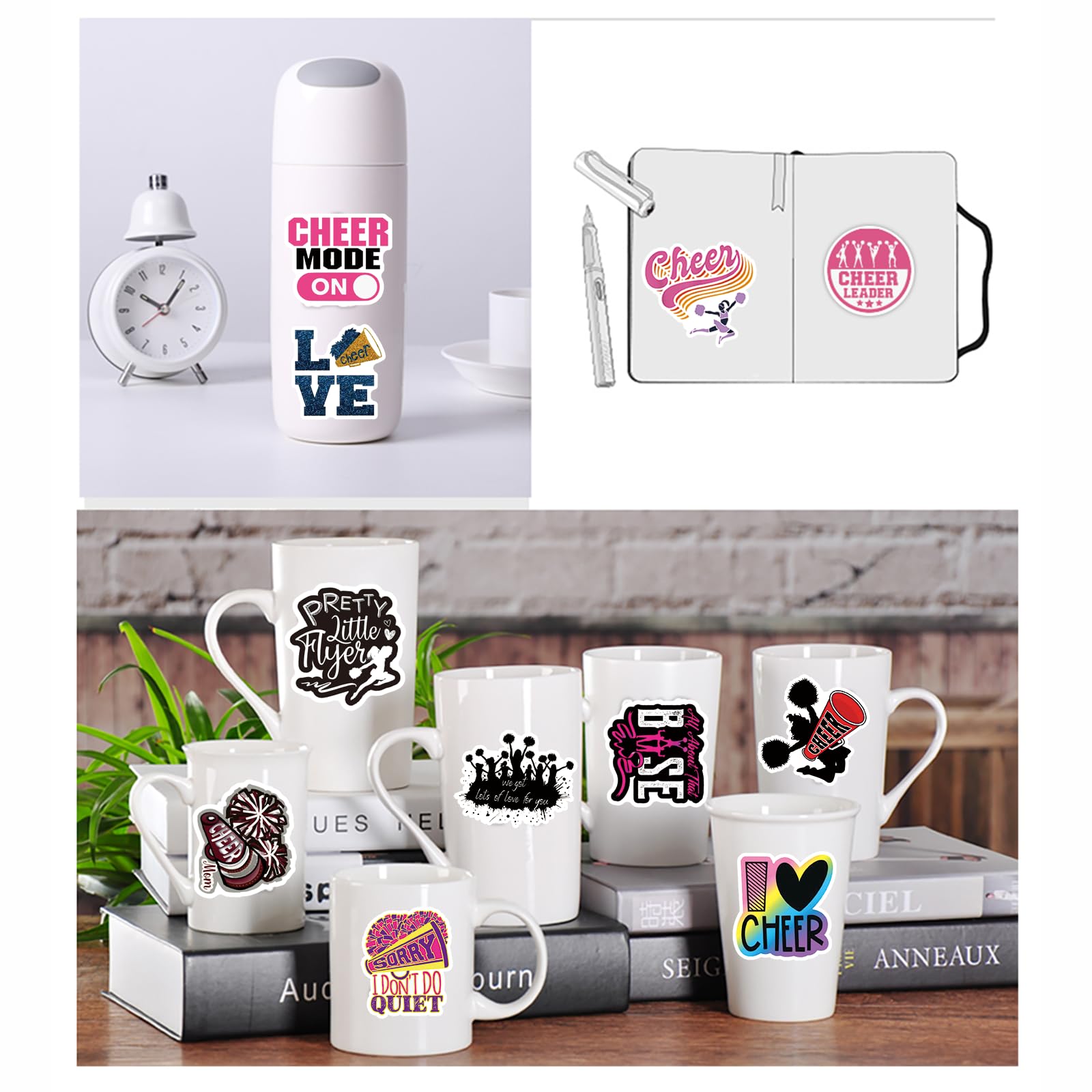 Versatile Usage--These vinyl Cheer Stickers are super cute and stylish, suitable for tailor-made for laptops, MacBook, suitcases, luggage, helmets, cars, bumpers, motorcycles, snowboards, PS4, bicycles, phone cases, surfboards, computers, swimming rings, lunch boxes, skateboards, guitars, scrapbooks and any surface you want to adorn. Elevate your style and stand out everywhere you go