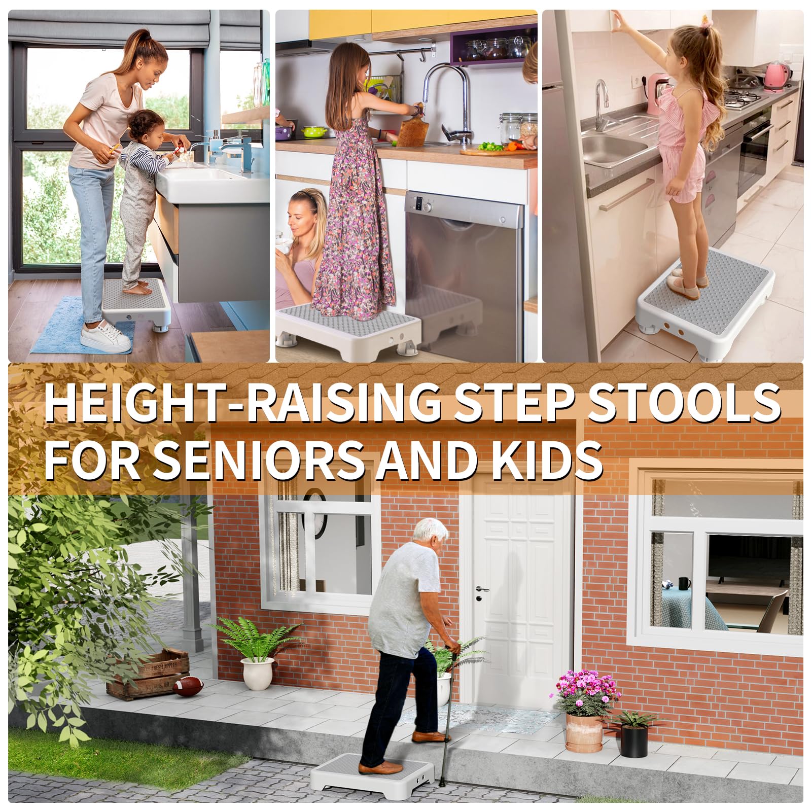 【Versatile Use for Every Household】: This plastic stackable step stools is more than just a stool—it’s a reliable companion for every household. Serving as a mobility aid, it helps the elderly or disabled navigate stairs, provides an extra outdoor step platform at doorways, and makes getting in and out of cars effortless. As a height-raising step stool, it’s great for adults needing to safely get in and out of bed, reach high cabinets, or enjoy stable support in the bathroom
