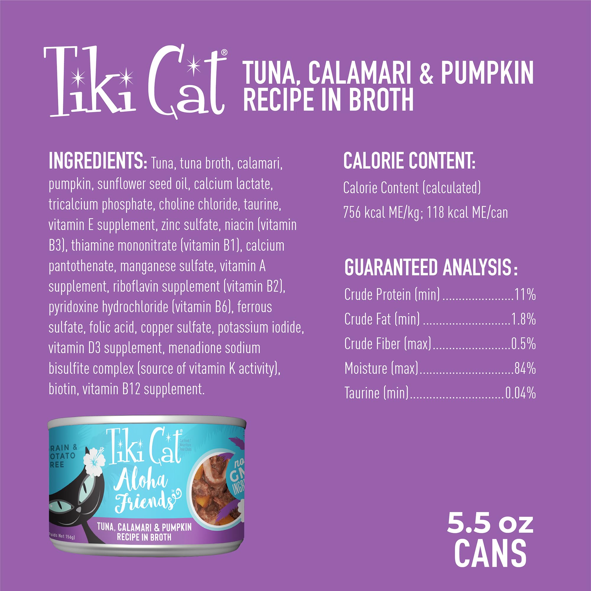 Tiki Cat Aloha Friends Wet Cat Food is delicious meals with real tuna and easy-to-digest pumpkin, combined with flavorful fish or seafood.