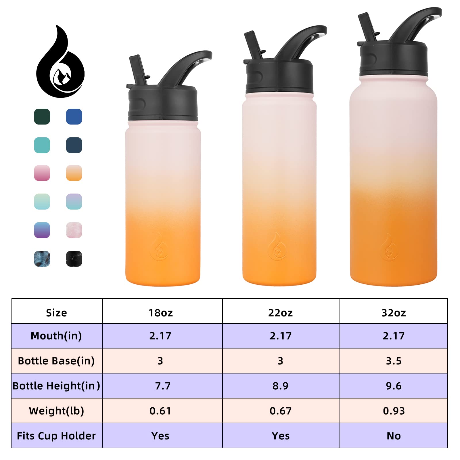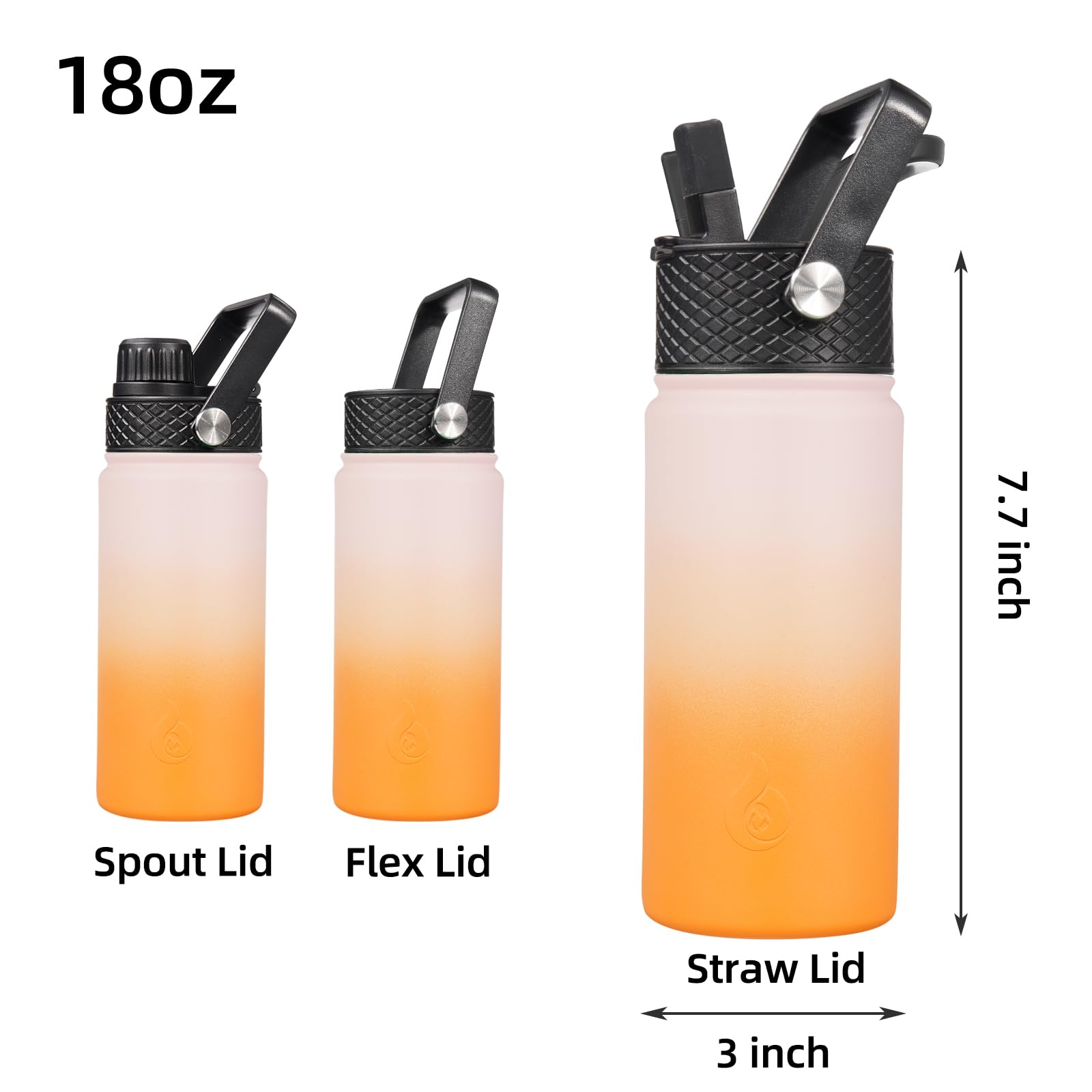 BJPKPK Insulated Water Bottles with Straw Lid, 18oz Stainless Steel Metal Water Bottle, Cold Hot Thermo with 3 Lids, Leak Proof BPA Free Travel Cup, Wide Mouth Flasks, Thermo -Coral