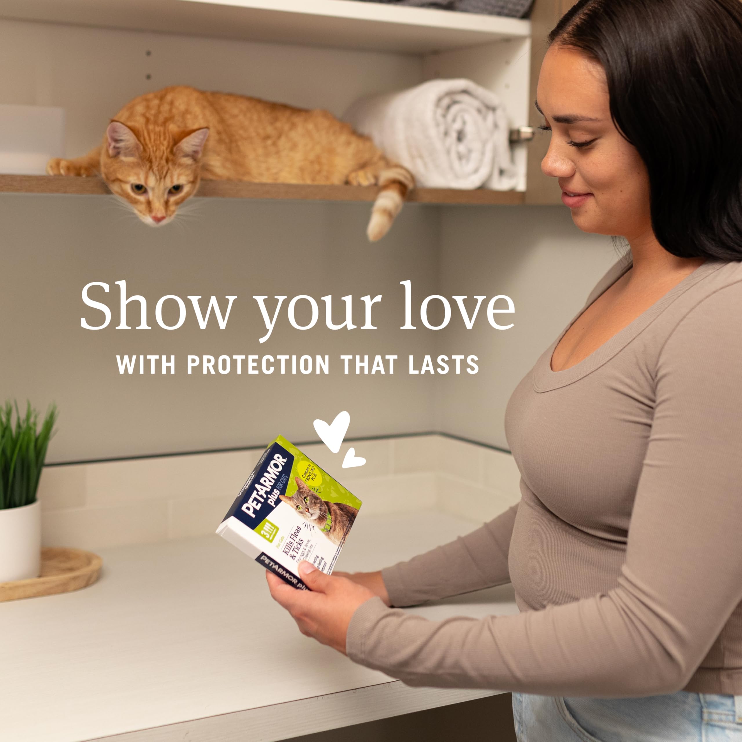 Your pets are family, and PETARMOR helps you confidently care for your cat, especially when it comes to flea and tick control. PETARMOR plus conveniently provides vet-quality protection without the expense of a vet visit. PetArmor Plus Flea and Tick Topical For Cats eight (8) weeks and older who are 1.5 lbs. or larger is a waterproof, fast-acting, long-lasting formula that kills adult fleas and ticks plus stops the flea cycle dead in its tracks. This cat flea treatment has the same active ingredients as FRONTLINE® Plus for Cats. Get nose to tail 30-day protection with each dose at an affordable price. One six-dose package of PetArmor Plus Cat Tick and Flea Treatment offers six months of continuous coverage for most breeds (not recommended for hairless cats).
