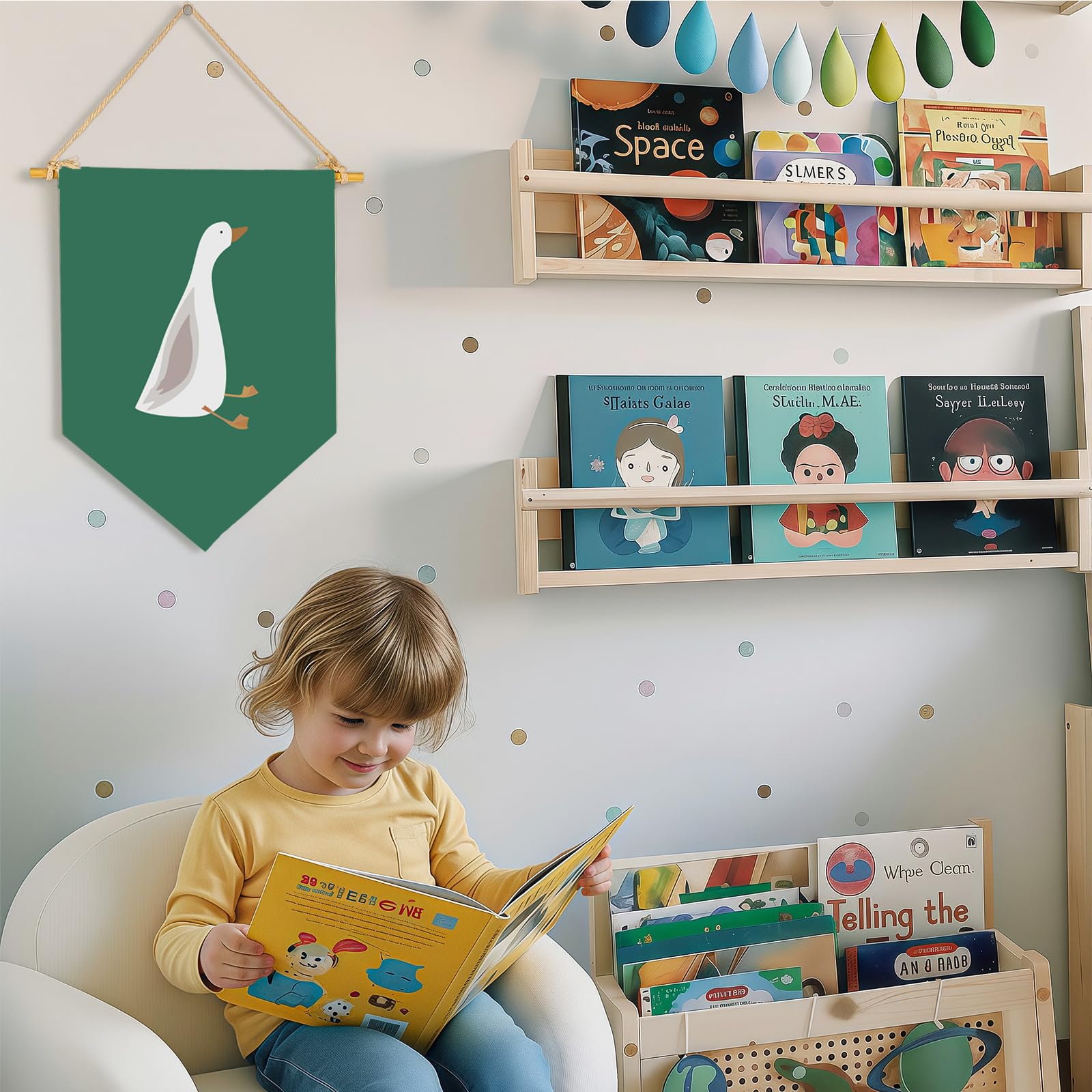 Perfect Size for Baby/Kids's room Space – Our banners are Designed for baby kids teen room wall decor, this wall decor fits changing table or reading corner, playroom,reading room,making a sweet statement without overwhelming small spaces