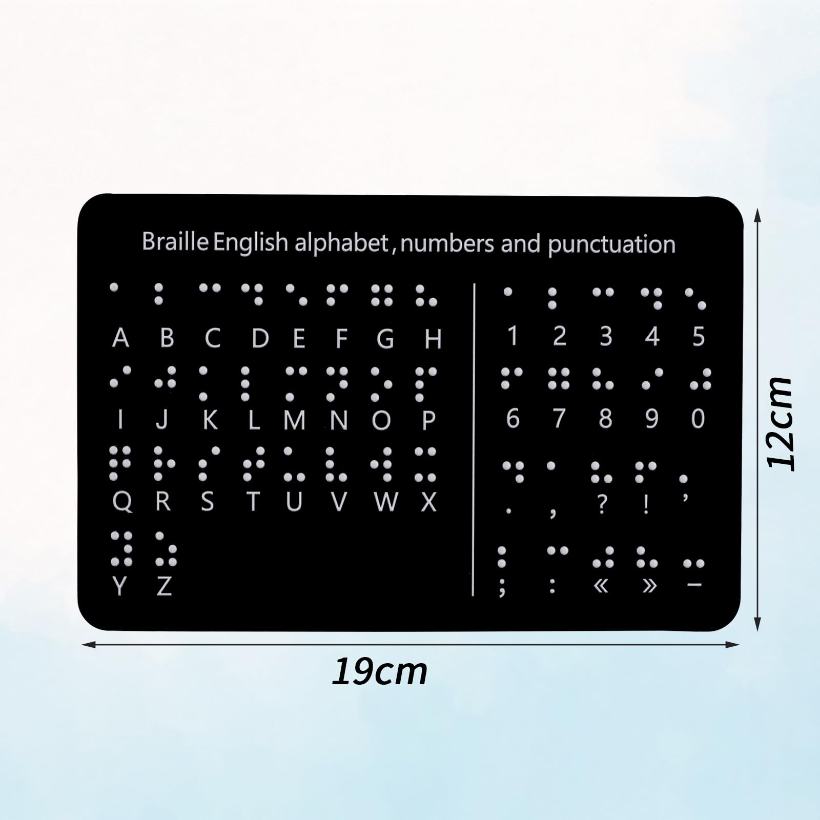 Size Details: The size of this braille alphabet board is 19x12cm/7.48x4.72in, which is moderate in size and lightweight, so you can carry it with you for your study.