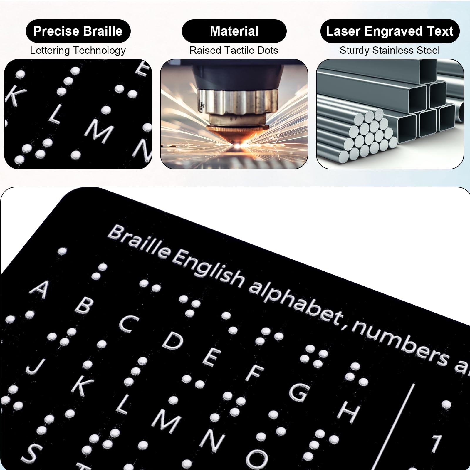 Awesome Materials: This Braille alphabet board is mainly made of reliable aluminum-plastic plate, which is strong and durable, comfortable to the touch, and ergonomic, providing educators with richer teaching resources.