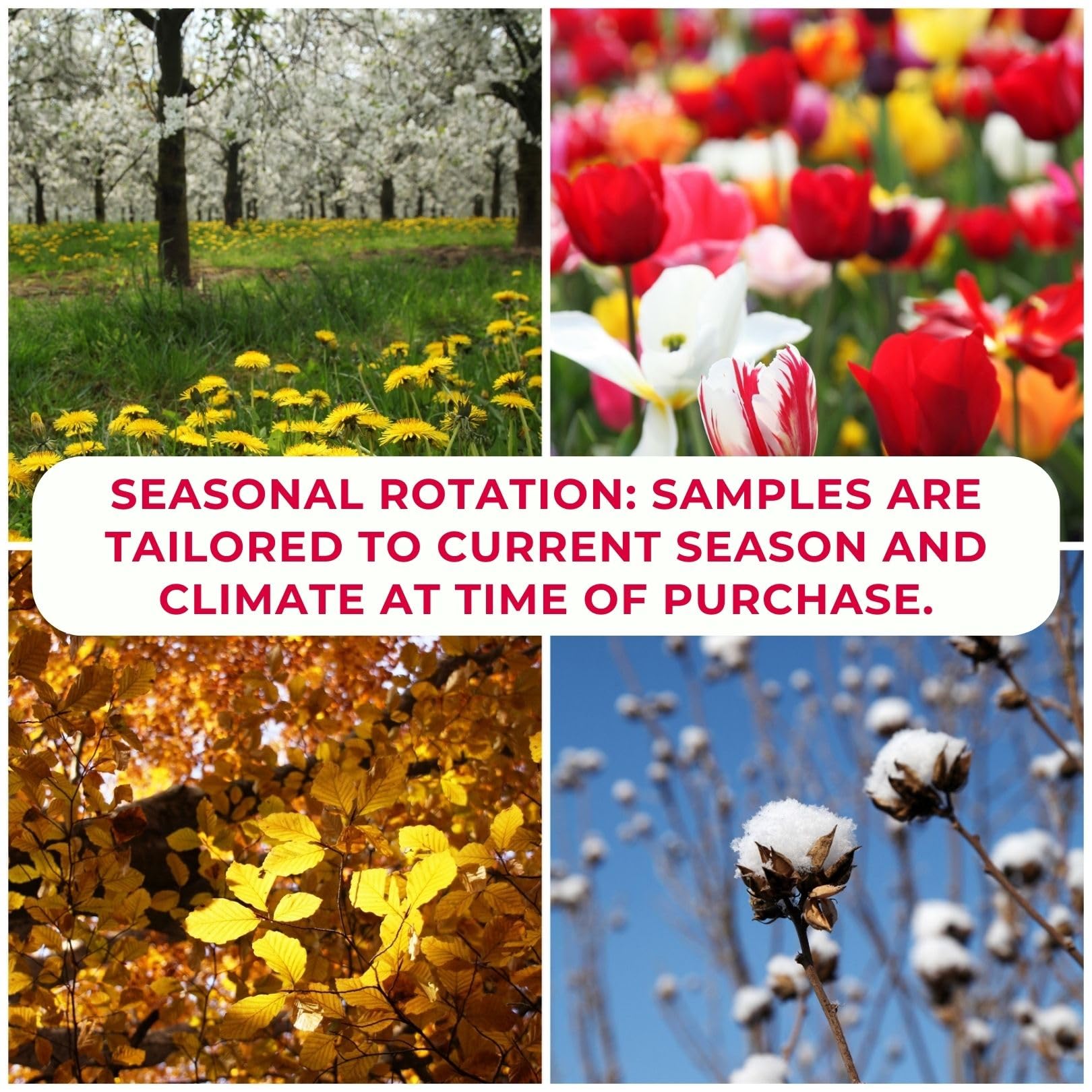 Fragrance Profiles for Every Season: Enjoy Spring Blossom's fresh floral notes of jasmine, lily of the valley, and citrus; Summer Breeze's vibrant fusion of tropical fruits, coconut, and vanilla; Autumn Spice's warm blend of cinnamon, clove, and amber; Winter Woods' woody, musky scent with cedarwood, sandalwood, and oud; and Arabian Nights' exotic blend of rose, saffron, and patchouli.