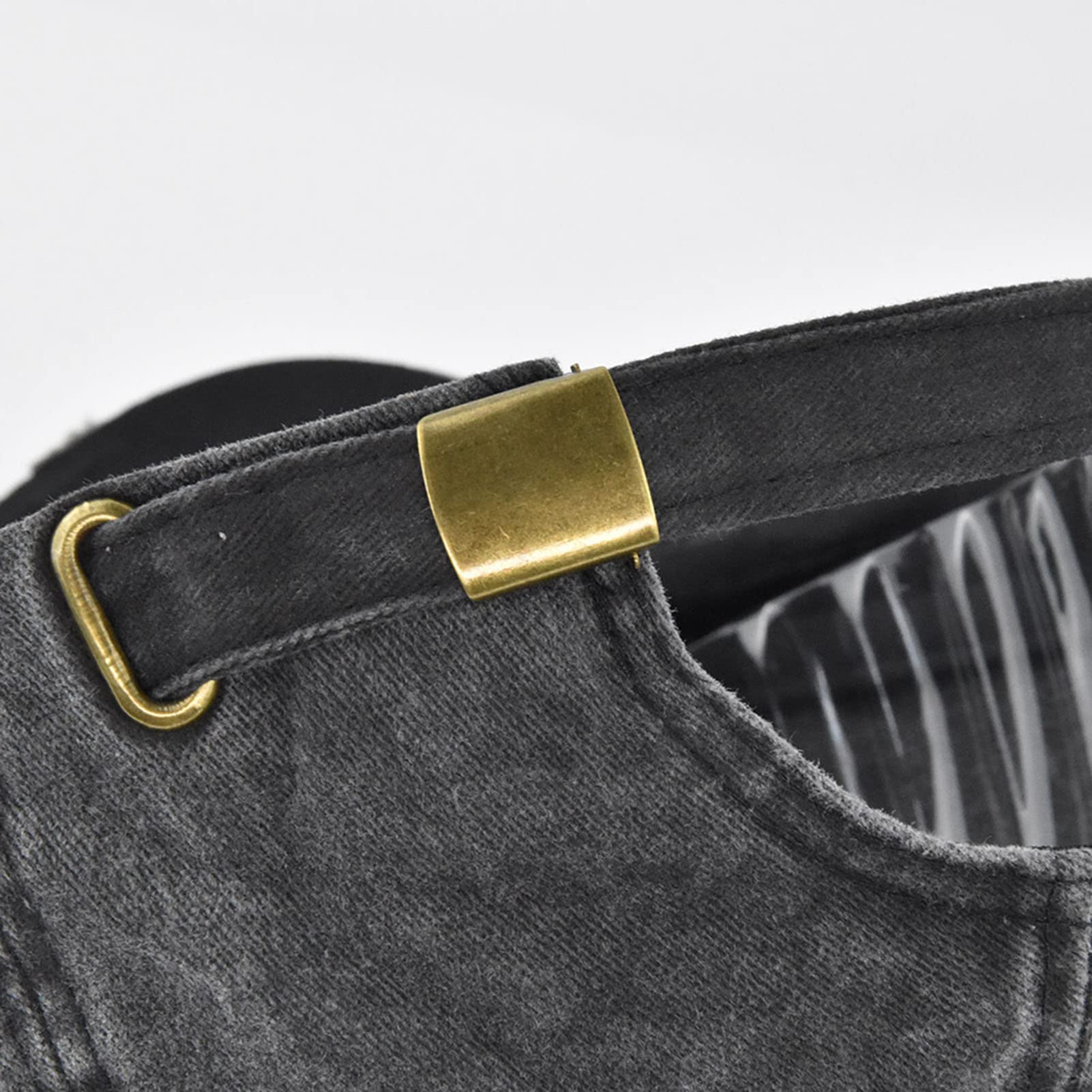 100% Cotton. Adjustable Ring Buckle Strap, One size fit most. Circumference: 21.3-23.6 inches. Brim: 2.95 inches. Crown: 4.72 inches. Pigment dyed, garment washed, low profile, six panel. unstructured.
