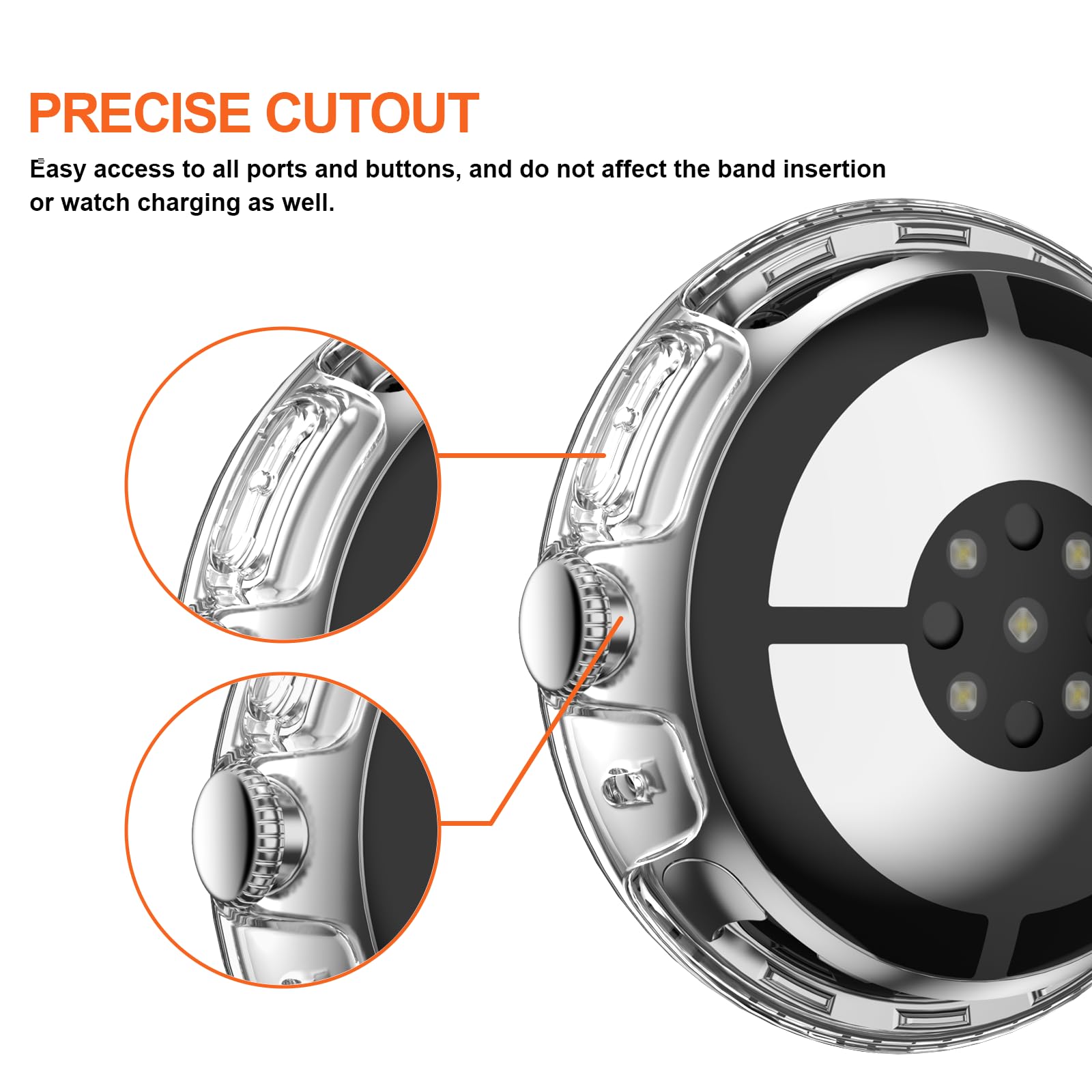 【Easy to Take On & Off】: With Precise Cutouts for functional buttons and ports, you can easy snap on and take off the case, Do not affected the band insertion or watch charging.It can be reused and is more durable than simple Tempered Glass film