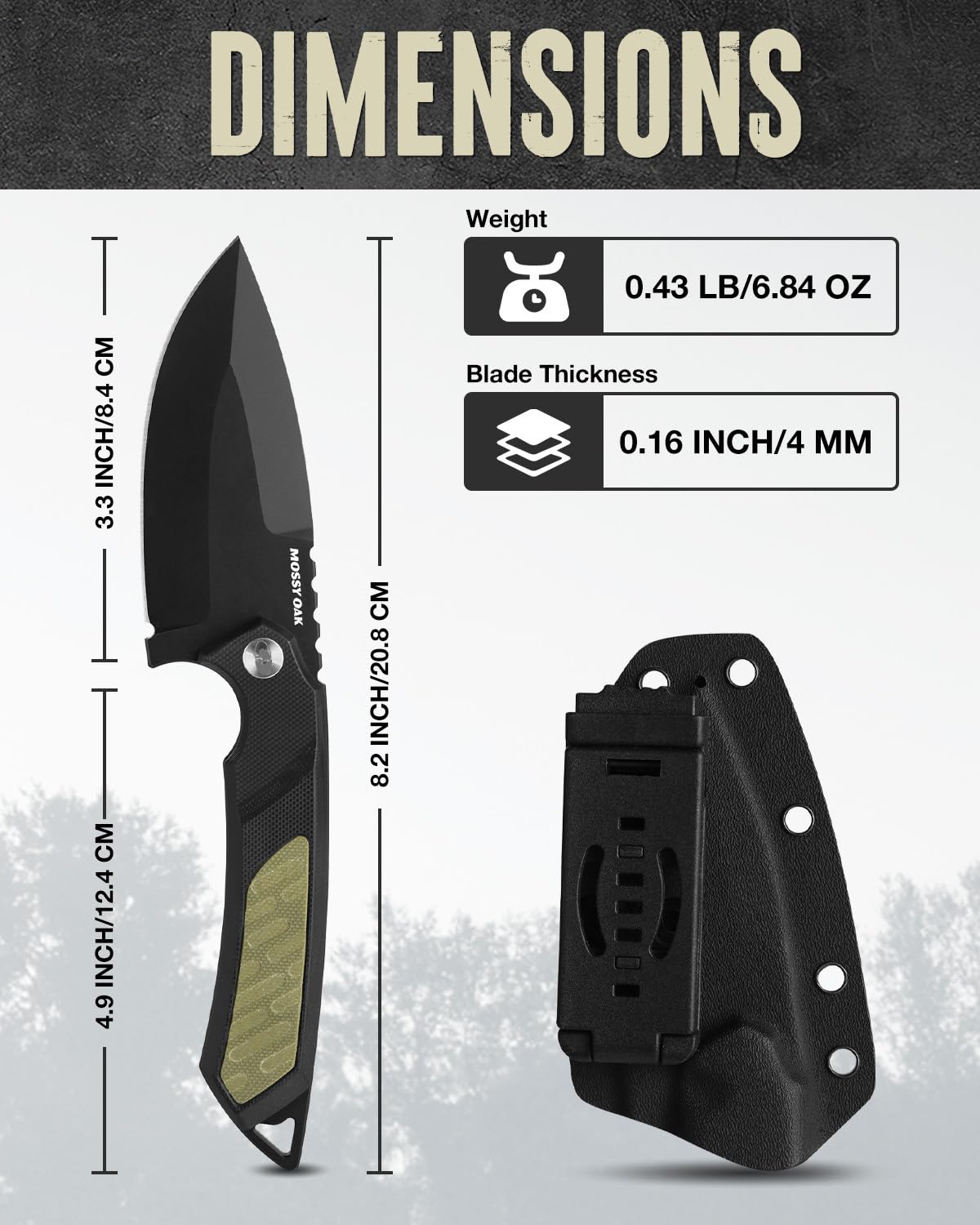 Secure and Quick-Access Kydex Sheath: This 8-inch fixed blade knife includes a rugged Kydex sheath for safe storage and fast access. Keep your knife protected and ready for action, whether you’re hiking, camping, or in a survival scenario