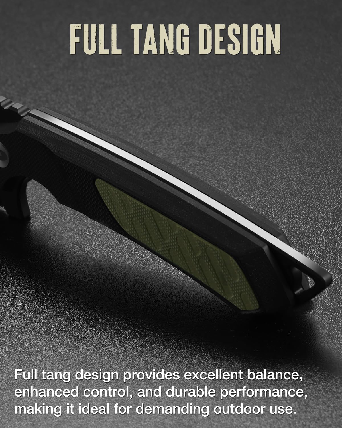 Full Tang Design for Maximum Strength: Built as one solid piece, the full tang design ensures superior durability and control. This 8-inch fixed blade knife is ideal for chopping branches and handling tough outdoor tasks