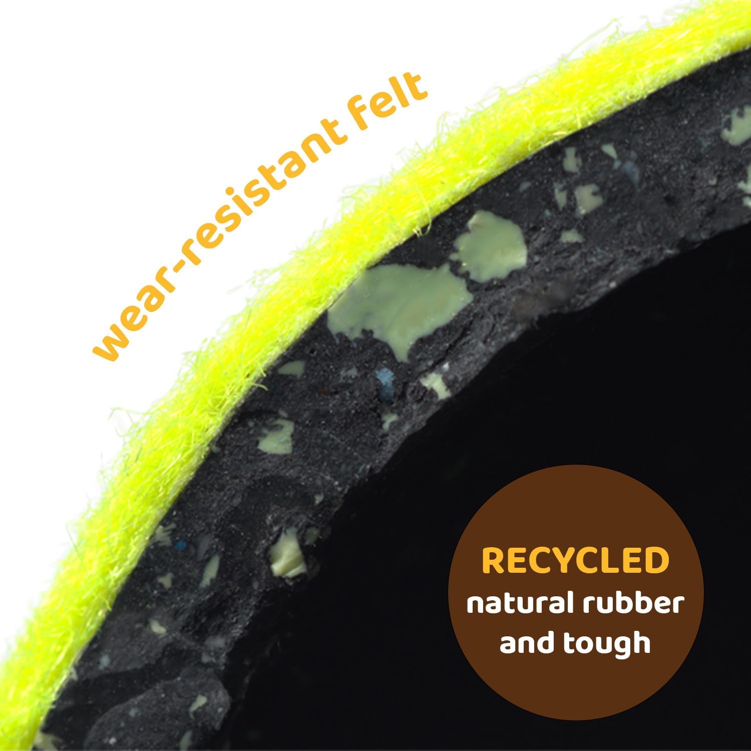 π SAFETY AND SUPERPOWERS: Your pet's safety is our kryptonite. Pupβs Pick dog tennis balls are crafted from recycle natural rubber and tough, wear-resistant felt. They're the dynamic duo of safety, non-toxic and gentle on your dog's pearly whites. And with their air-hollow core, they're practically immortal, ensuring endless playtime adventures!