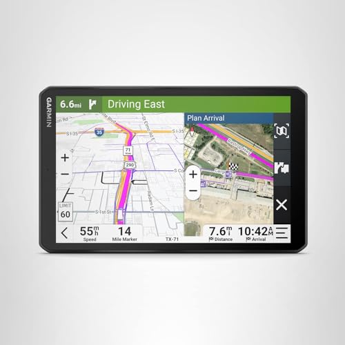 Delivering our best in trucker-trusted navigation, the 8-inch dēzl™ OTR820 navigator features dēzl community insights from thousands of truck drivers to help you find trucker-rated parking, community-shared loading docks and other preferred trucking locations when paired with the dēzl™ app on your compatible smartphone. Get new wind speed weather alerts, via the dēzl app on your compatible smartphone, as well as road warnings for upcoming sharp curves and bridge heights to help aid awareness of potentially hazardous conditions along your route. Also new, an easy search tool lets you quickly find nearby CAT Scale locations to verify your load is within legal weight limits before hitting the road. Detailed maps offer custom truck routing for the size and weight of your rig (not available in all areas; always defer to posted road signs and road conditions). Plus, an active PrePass® account lets you receive weigh station and bypass notifications to save you time and improve efficiency. Expert arrival planning includes high-resolution aerial views of your destination for a smooth arrival at security gates, truck entrances and more. For the ultimate in-cab experience, pair with the dēzl smartphone app and add a premium dēzl™ headset (sold separately), so route guidance from your navigator can blend seamlessly into your headset audio stream.