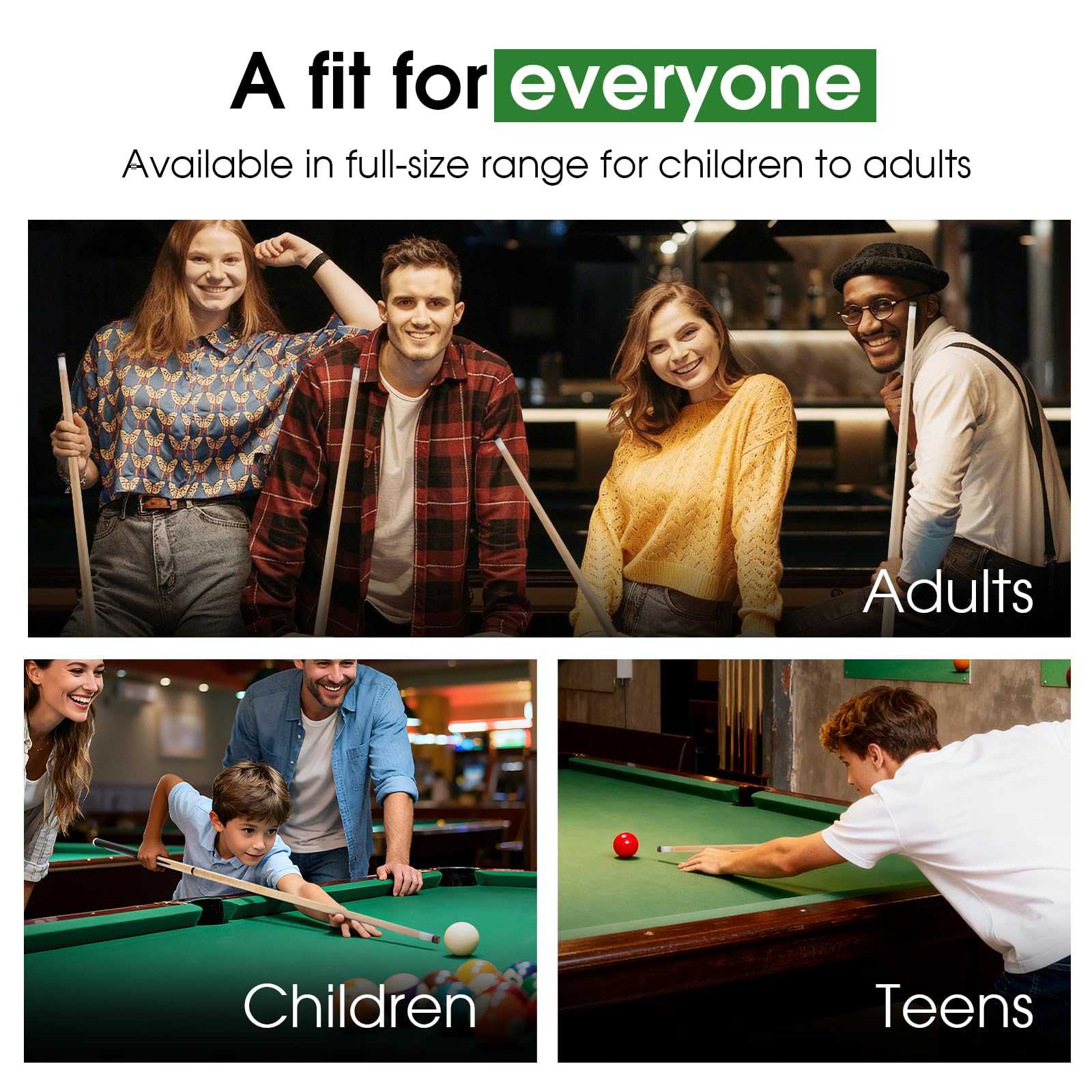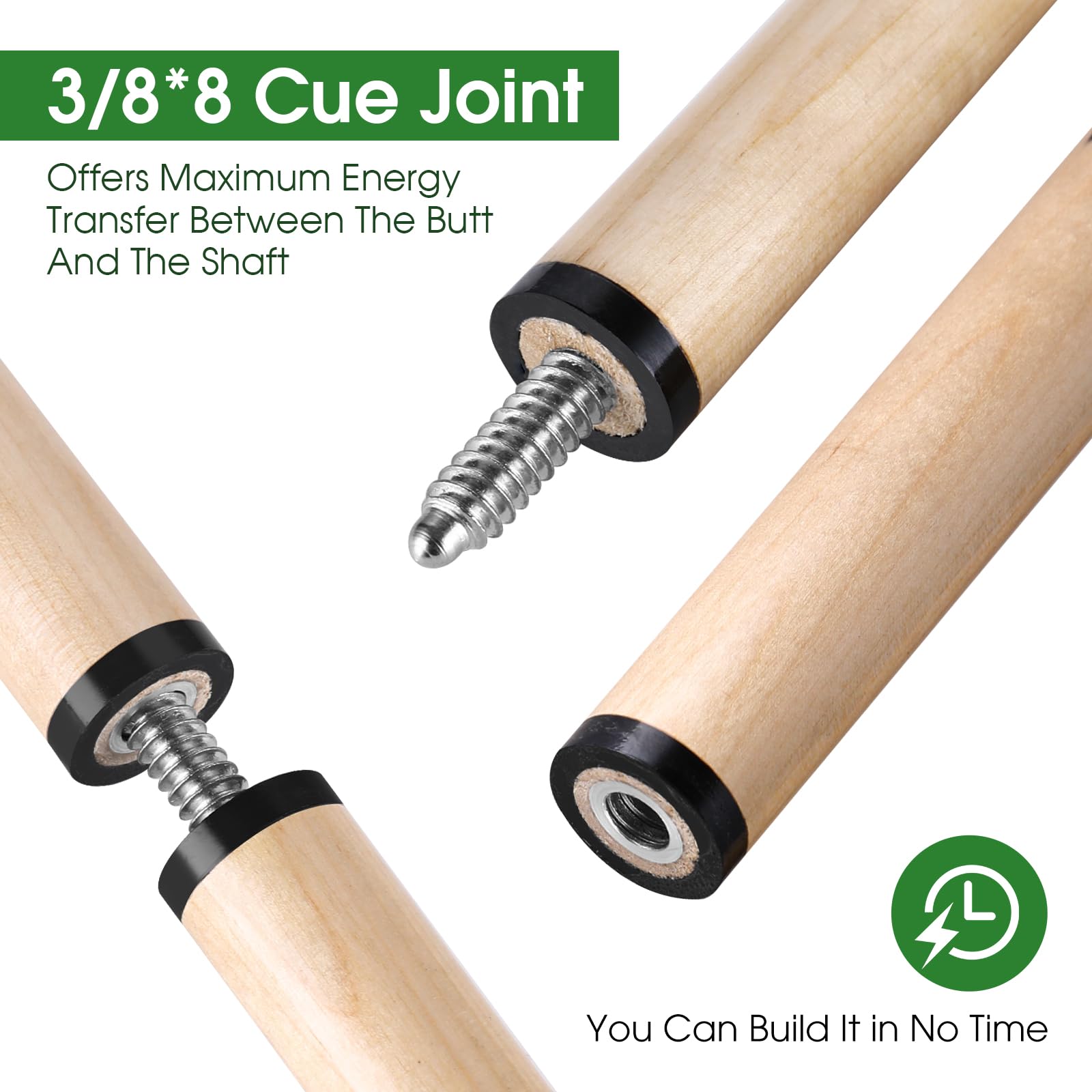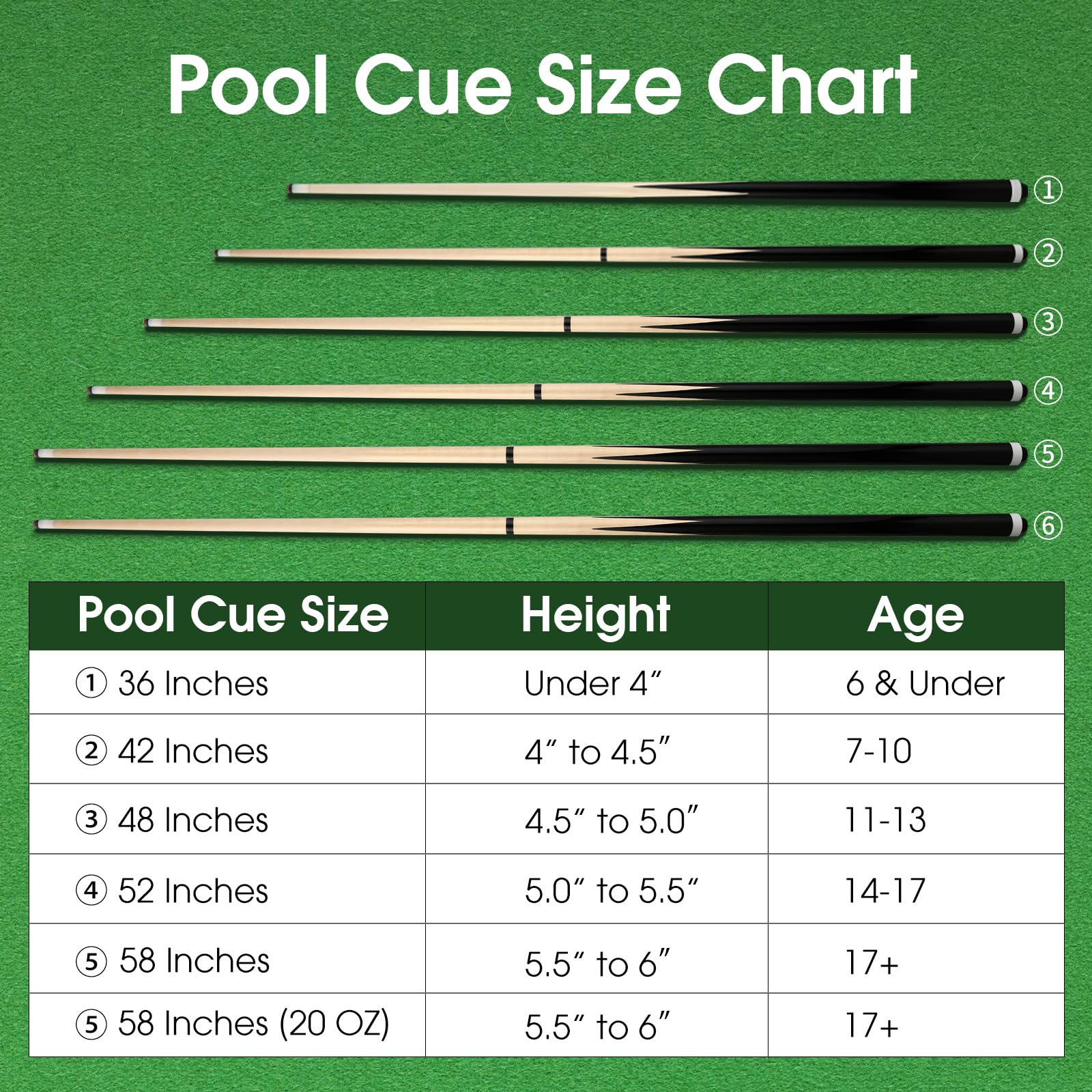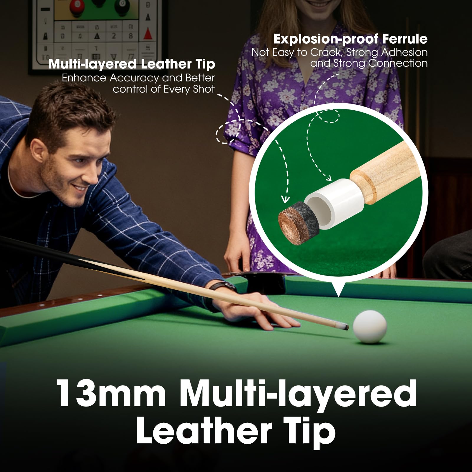 GREAT POOL CUE STICK : These two-piece pool cues all have hard rock maple shafts, quality leather tips,professional tapers, accurate and straight shooting,just like the more expensive cues! Even advanced players are impressed with the hit and control that is provided so you can be sure that you’ll get a lot of “bang for your buck”!