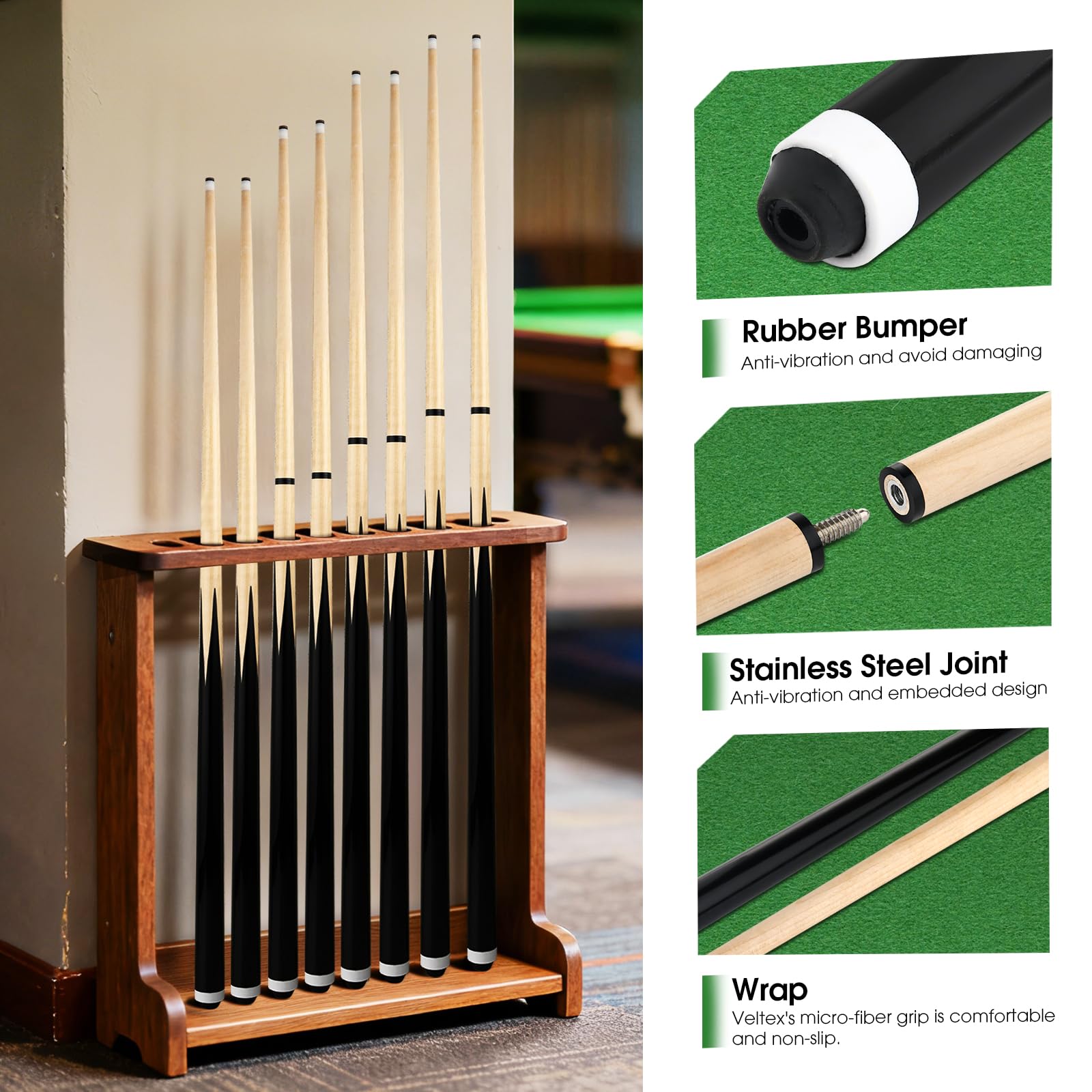 CLASSIC STYLE DESIGN : 9 coats of varnish surface of this billiard cue stick is great hand feel,very friendly for a firm grip.The butt has a black rubber bumper that will not easily damage the cue when you place it upright on the ground.
