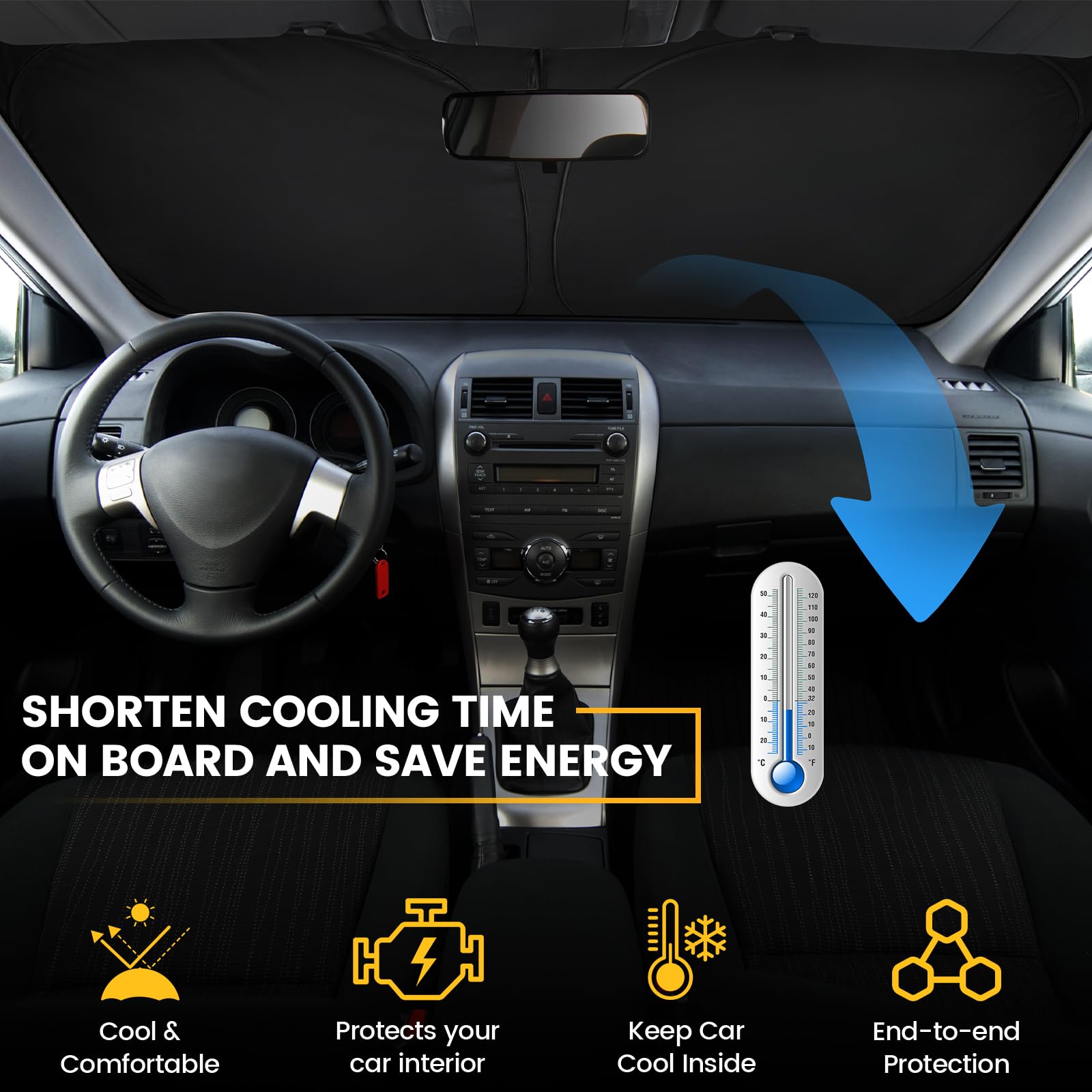 Premium Material - Our windshield sunshades is made of premium silver-coated material, and the high-quality reflective material can provide excellent insulation and sun protection even on the hottest days, maximizing car's trade in value. Strengthening the steel ring provides better durability, ensuring a longer and safer service life